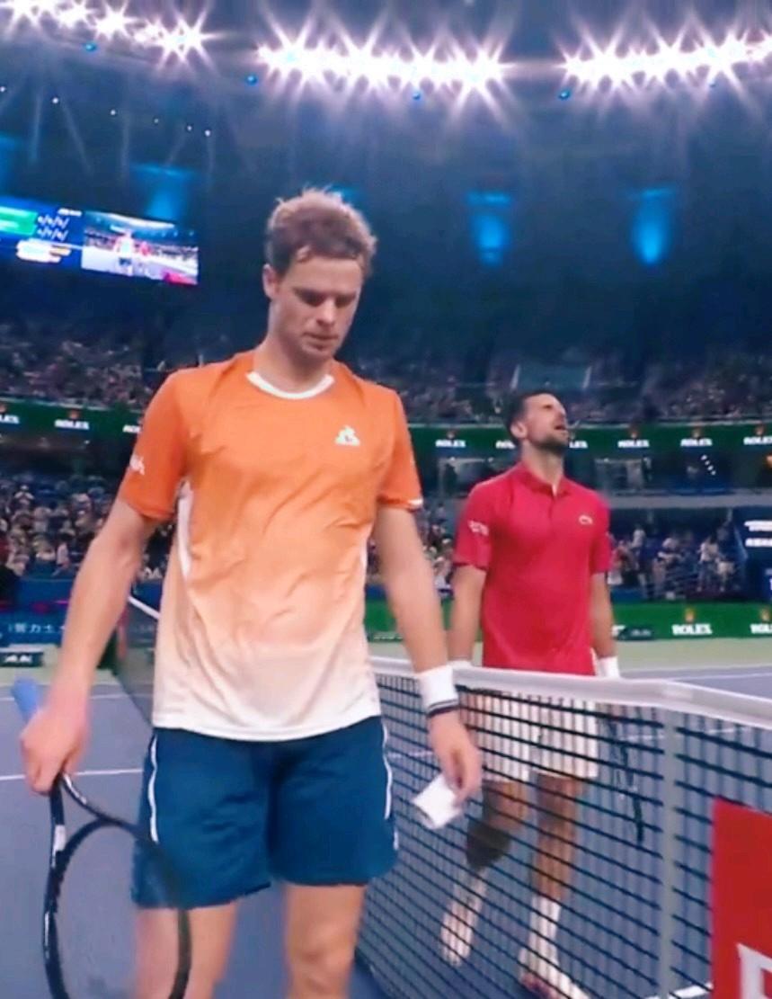 2025上海ATP大师赛男单第三轮,德约科维奇以4-6/7-5/6-3逆转汉夫曼晋级16强,下轮对阵穆纳尔。 在湿热的上海天气下,双方都呈现出明显疲劳感,还是老德韧性强,第二盘利用短球和变化,盘末偷鸡拿下,第三盘接发破发赢下。 德约赢球后再次在镜头写下中文"德"字,相比2024年明显进步,笔划流畅且正确,引发球迷调侃"回去有认真复习"。 大V陈君乐调侃:今天这个‘德’字写得又快又好,面子挣回来了!