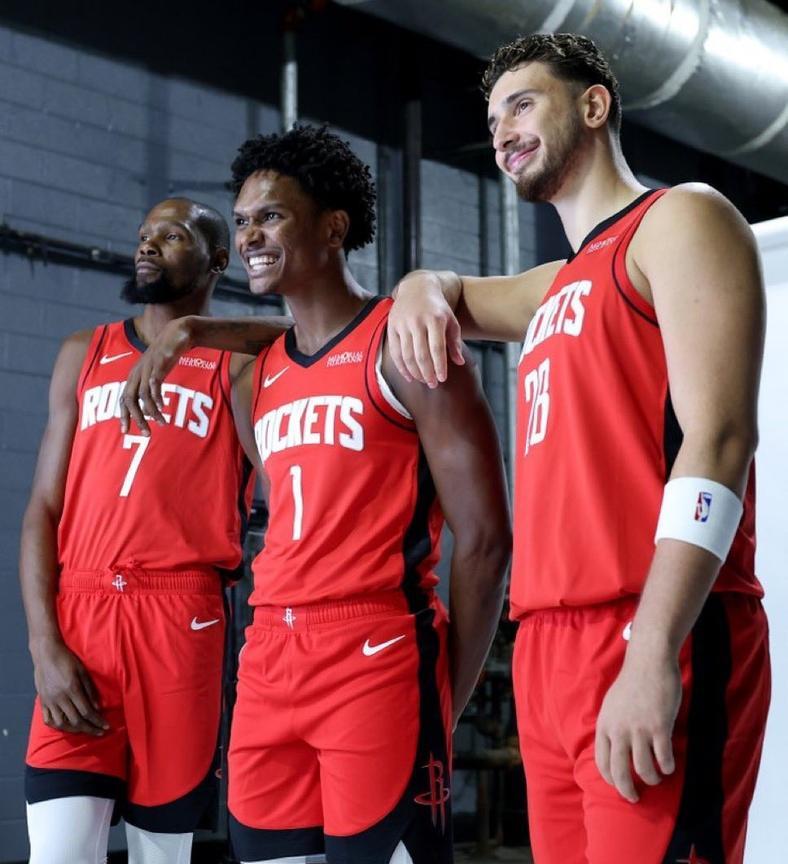 火箭新赛季首发框架落定:乌度卡确认四核心 杜兰特领衔申京在列 火箭新赛季的阵容拼图,终于浮现关键轮廓。主帅乌度卡在采访中正式确认,球队已锁定四名首发球员人选,分别是后卫阿门-汤普森、前锋凯文-杜兰特与小贾巴里-史密斯,以及中锋阿尔佩伦-申京,唯独第五个首发席位暂未敲定,成了阵容中的“悬念留白”。 这份初步成型的首发框架,完美融合了经验沉淀与青春活力:杜兰特的加盟,为火箭注入了联盟顶级的得分爆发力与关键球掌控力,堪称球队攻防两端的“定海神针”;申京的内线策应能力与小贾巴里-史密斯的外线投射威胁形成绝佳互补,一内一外撑起了球队的内线攻防体系;阿门-汤普森则凭借出色的身体素质与开阔的传球视野,稳稳承担起后场串联的核心重任。第五个首发席位的空缺,既为球队保留了根据对手调整阵容的弹性空间,也让外界对火箭新赛季的最终轮换排布,更添了几分期待。