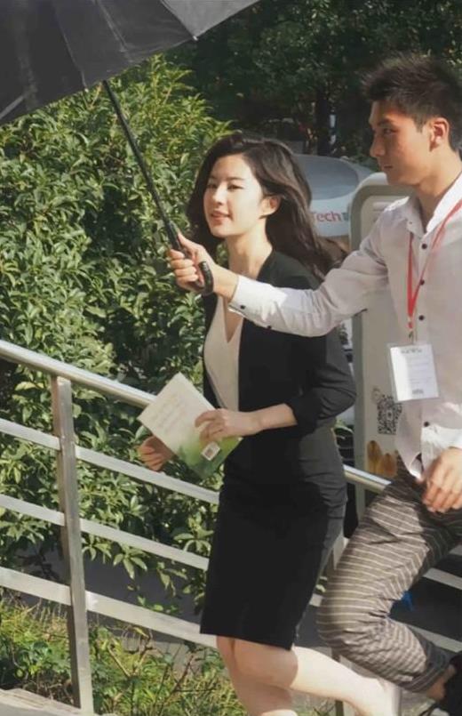 看来大明星就是不一样,出门工作有专门的助理帮她打伞,你看这一位男助理身高不矮吧,站刘亦菲旁边比她高出了一大截,估计有180以上。 照片里的刘亦菲,虽然五官精致,但是驼峰鼻影响了她整体的气质,看着没有网友口中说的那么美。