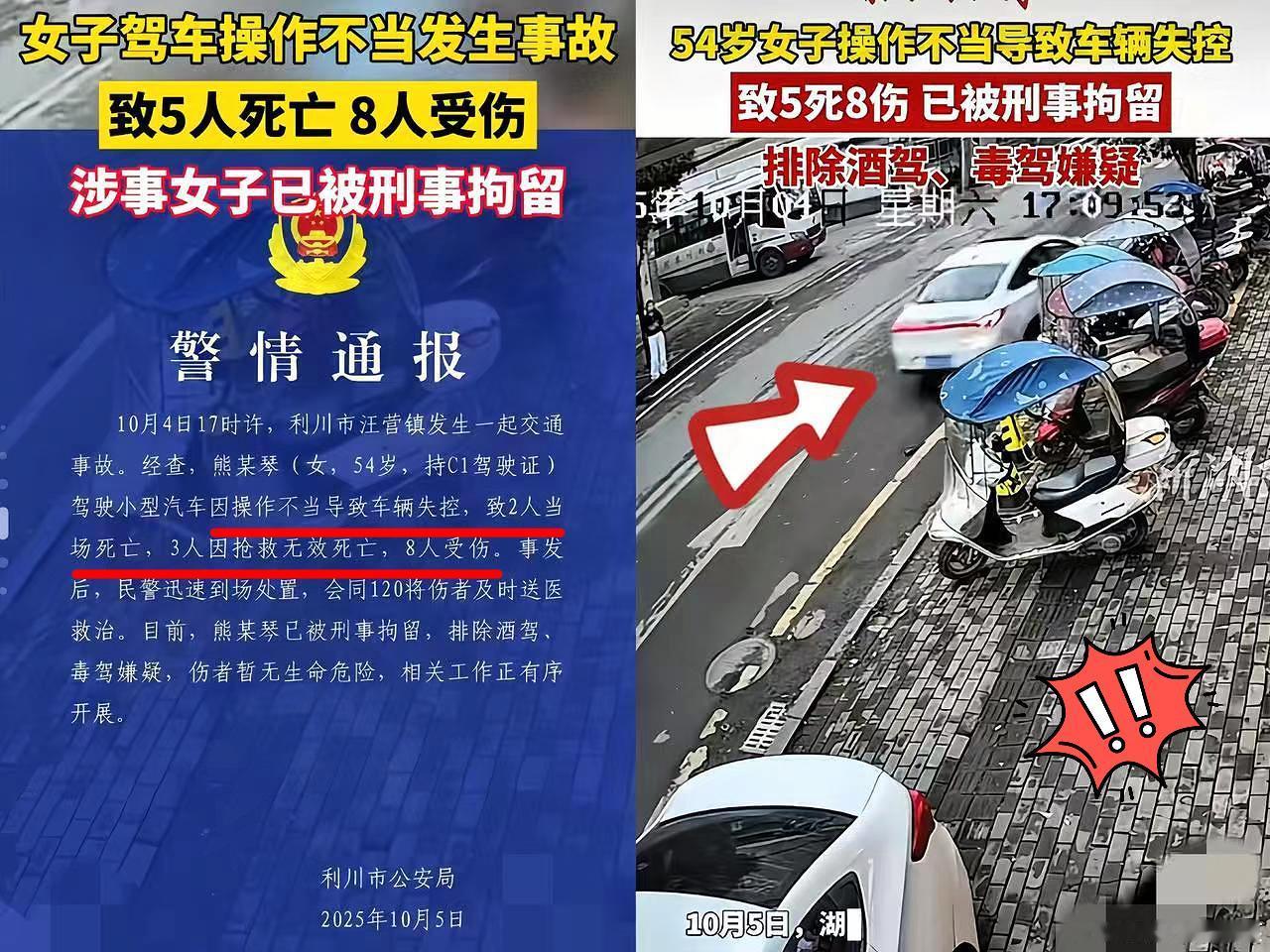 利川5死8伤车祸,54岁女司机虽被刑拘,但仍有4个细节让人难以理解!一、刹车