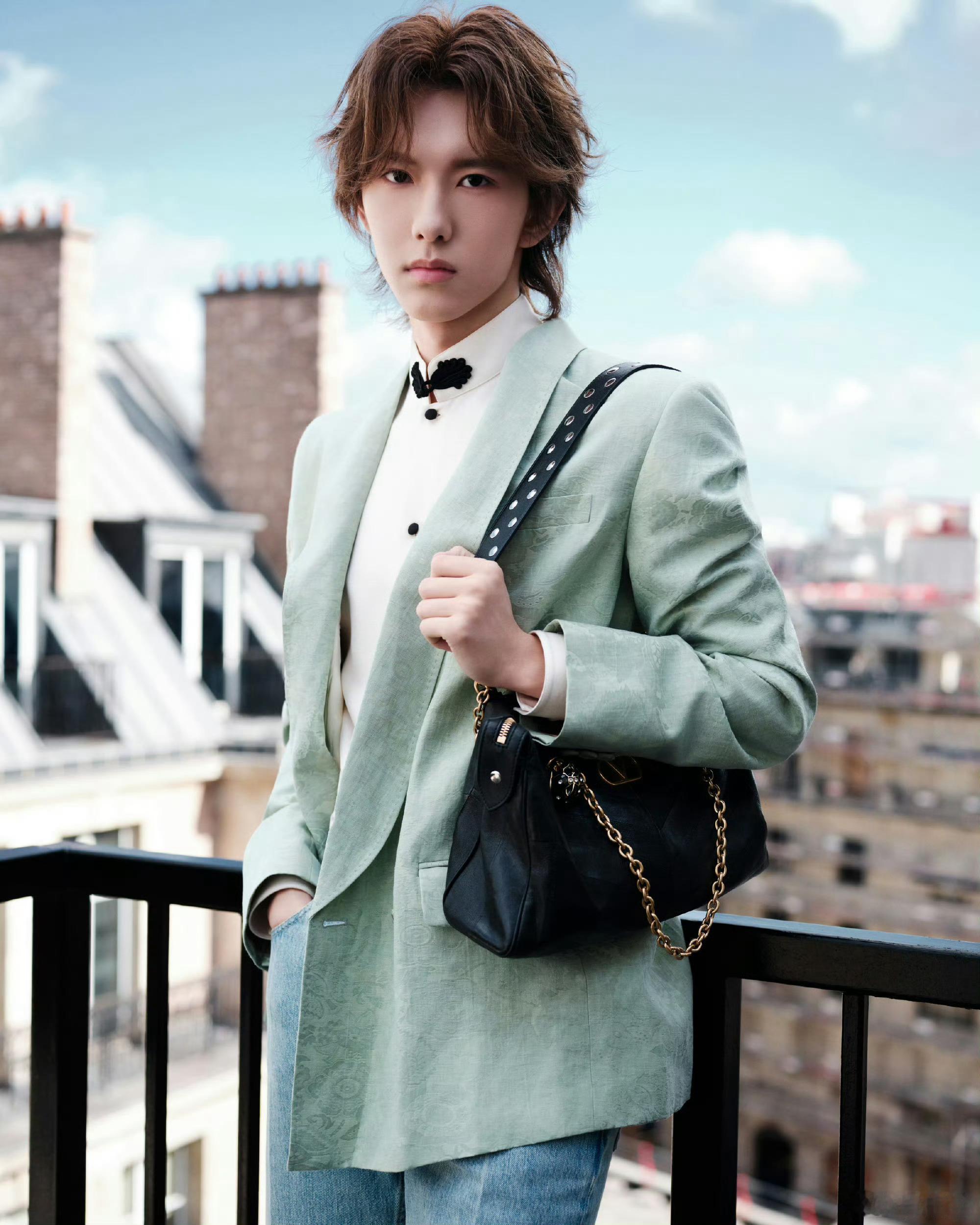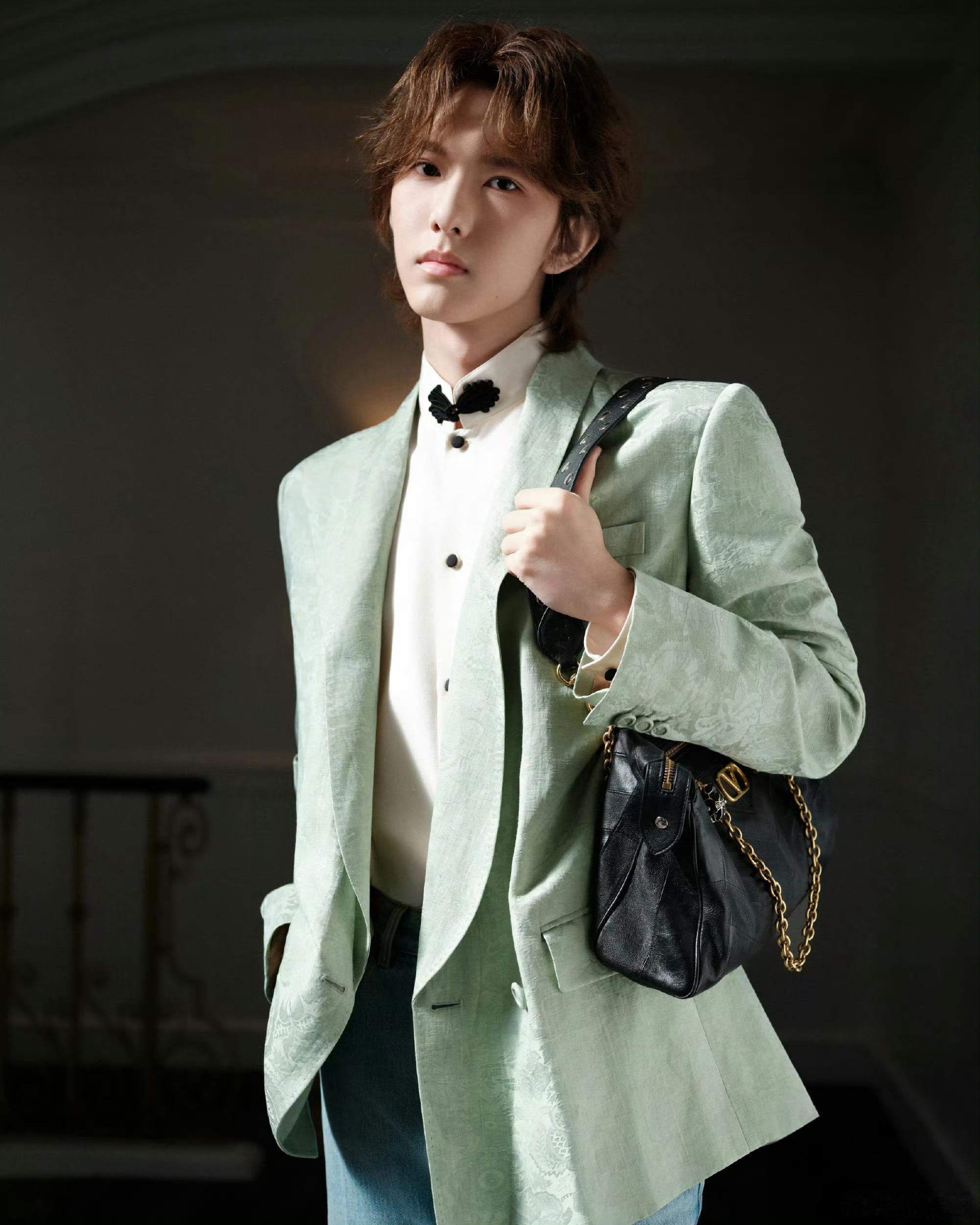 马柏全身穿2026早春超季礼服亮相Valentino 2026春夏大秀,绿色西服配丹宁裤装清雅贵气,简约又时髦的一套[耶]巴黎时装周