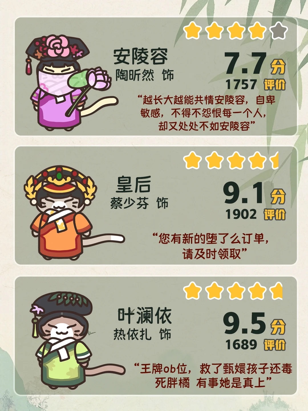 网友给出的甄嬛传角色评分 [求关注][拜托]
