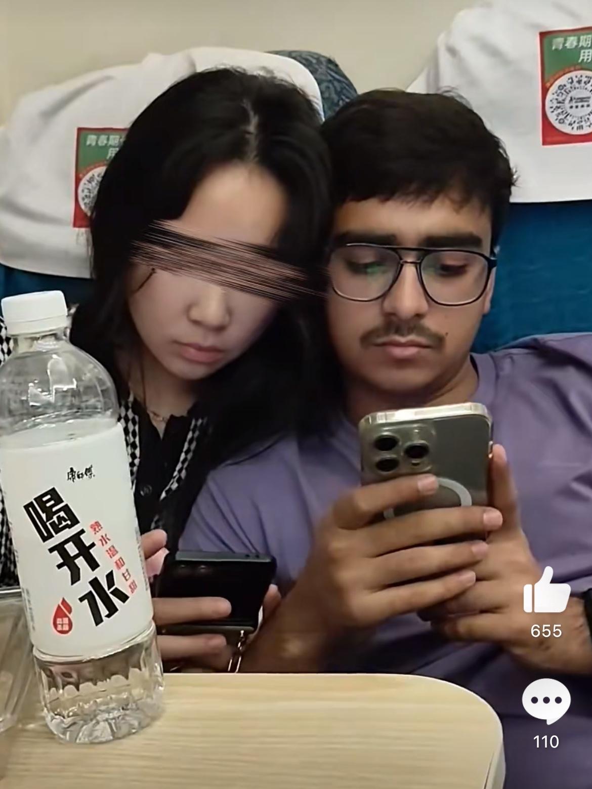 担心印度老铁涌入,这个小老铁已经捷足先登了,和中国女孩坐着绿皮硬座,相互依偎在一起玩手机,多幸福啊,这样的场面是多少国男梦寐以求的。可惜,没有彩礼,没有车房想都不要想。可是印度老铁喝着白开水就实现了,自己用着苹果手机,女友普通安卓手机,一瓶白开水两个人喝,这要是国男一定是反过来的。印度女游客 印度小伙 带印度人吃饭 印度女友 印度青年