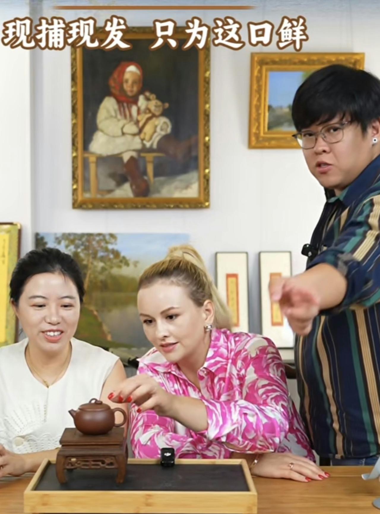 国庆节期间,汪院长带着自己的妻子娜塔萨和高中同学梅易希两位美女,加大了带货的直播