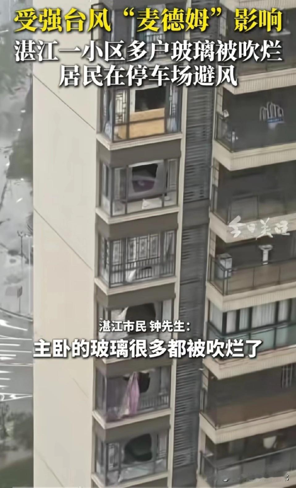 麦德姆在湛江搞突袭!小区玻璃被吹成碎片,居民躲车库避风 湛江的台风“麦德姆”