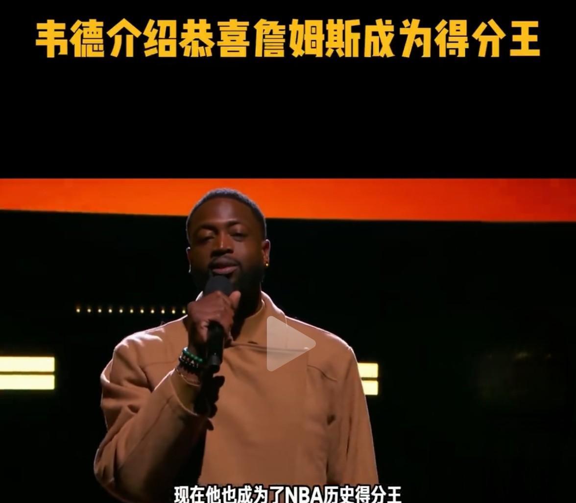 韦德主持勒布朗成为历史得分王太燃了: 贾巴尔在1984创造了NBA历史总得分记录38387分。 同时那一年一位未来之星出生了——他就是我的好兄弟勒布朗詹姆斯!高中毕业之前他就是天选之子!也让大家充了无数期待!他不仅是四届MVP得主!也是4届FMVP得主!21次全明星,13次一阵球员!同时他也是儿子、父亲、丈夫,现在他成为历史得分王我们祝福他吧!
