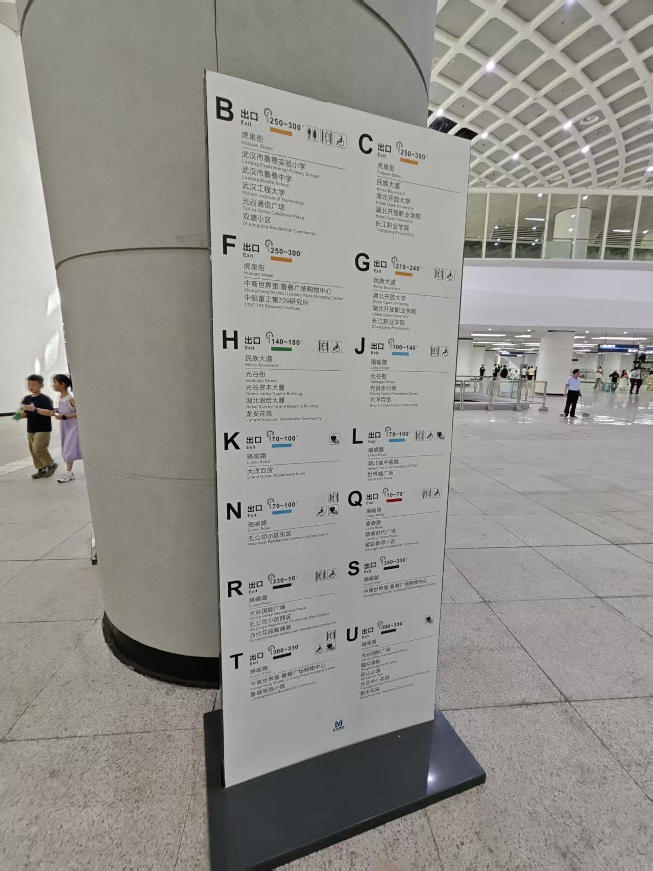 武汉一地铁站26个字母快用完了武汉地铁光谷广场站确实有很多出口,因为它位于光谷大转盘下方,连通了武珞路、珞雄路、民族大道三条主干道,周围还有光谷步行街、大洋百货等商圈,堪称四通八达,所以出口多有很正常,按照指示牌走一般是不会迷路的。