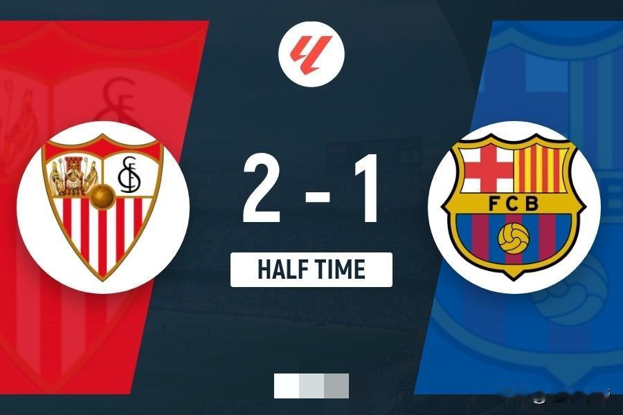 皇马球迷可以半场开香槟了,巴萨半场1-2落后塞维利亚! 在今晚巴萨与塞维利亚的