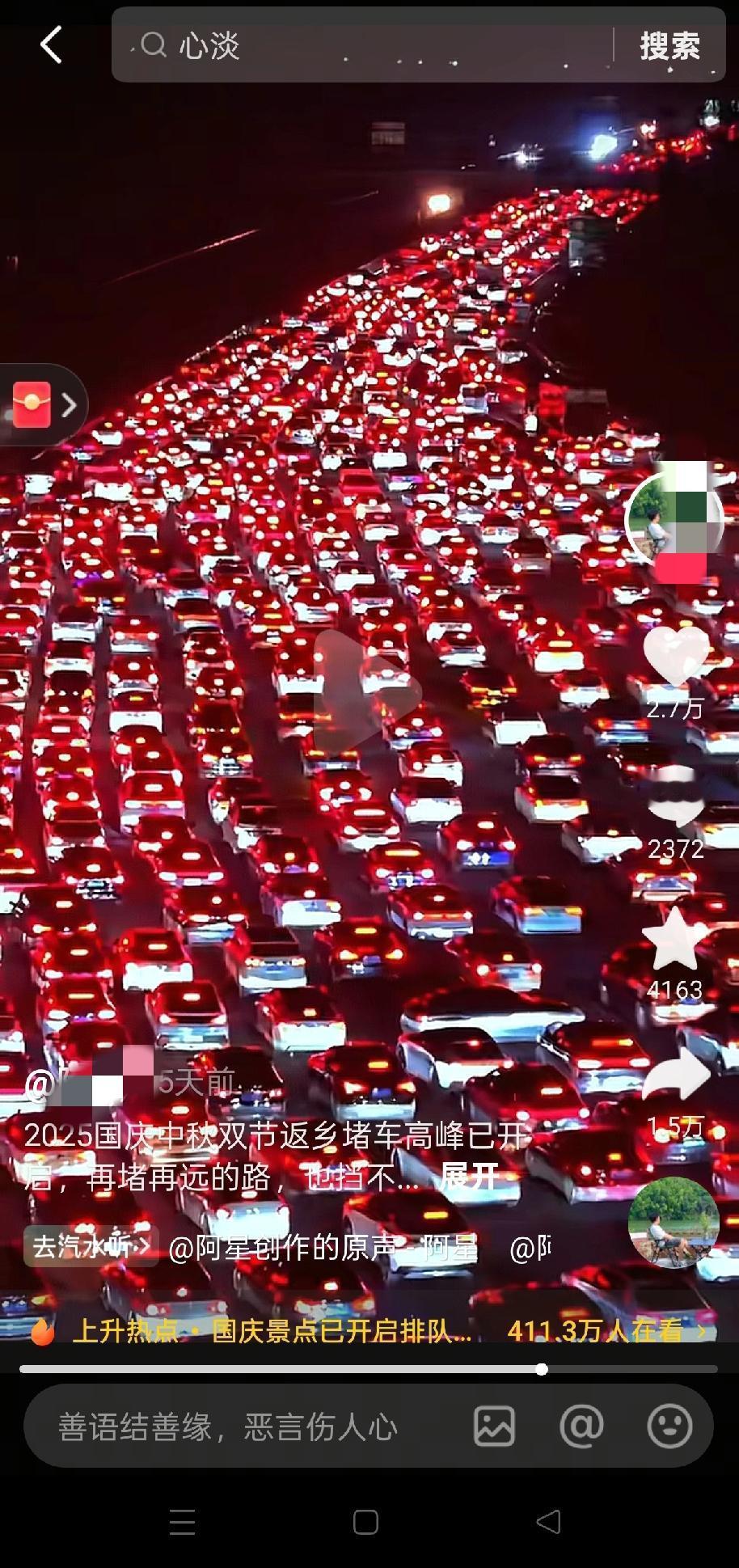 中秋返乡路堵成“红色星河”,可为啥没人抱怨?因为中国人的团圆账,从来不是用时间算的 你见过深夜里的“红色星河”吗?2025中秋的返乡公路上,万辆汽车的尾灯连成一片流动的灯海,红得热烈又执着。有人在车里就着矿泉水啃冷月饼,有人摇下车窗和邻车大哥分享自家的卤味,还有姑娘举着手机直播“堵车版中秋月”——这哪是堵车,分明是一场关于“回家”的集体仪式。 谁都知道中秋高速会堵得让人抓狂,可方向盘后的人们,反倒生出种“同路为圆”的默契。有个卡车司机跟我唠,“前年我为了赶中秋,在服务区打地铺等了一宿,今年这点堵算个啥!”这话里的执拗,像极了父辈们当年扛着行李赶绿皮火车的模样。 从旧时的归乡客徒步数日,到如今的车主在车流里耐心等候,交通工具换了一茬又一茬,可中国人对“团圆”的较真劲儿,从没变过。这路上的每一次刹车、每一分钟等候,都是在给“家”这个字攒着滚烫的分量。所以啊,别笑这路堵得荒唐,要知道,有些奔赴,就算等再久,也值当。