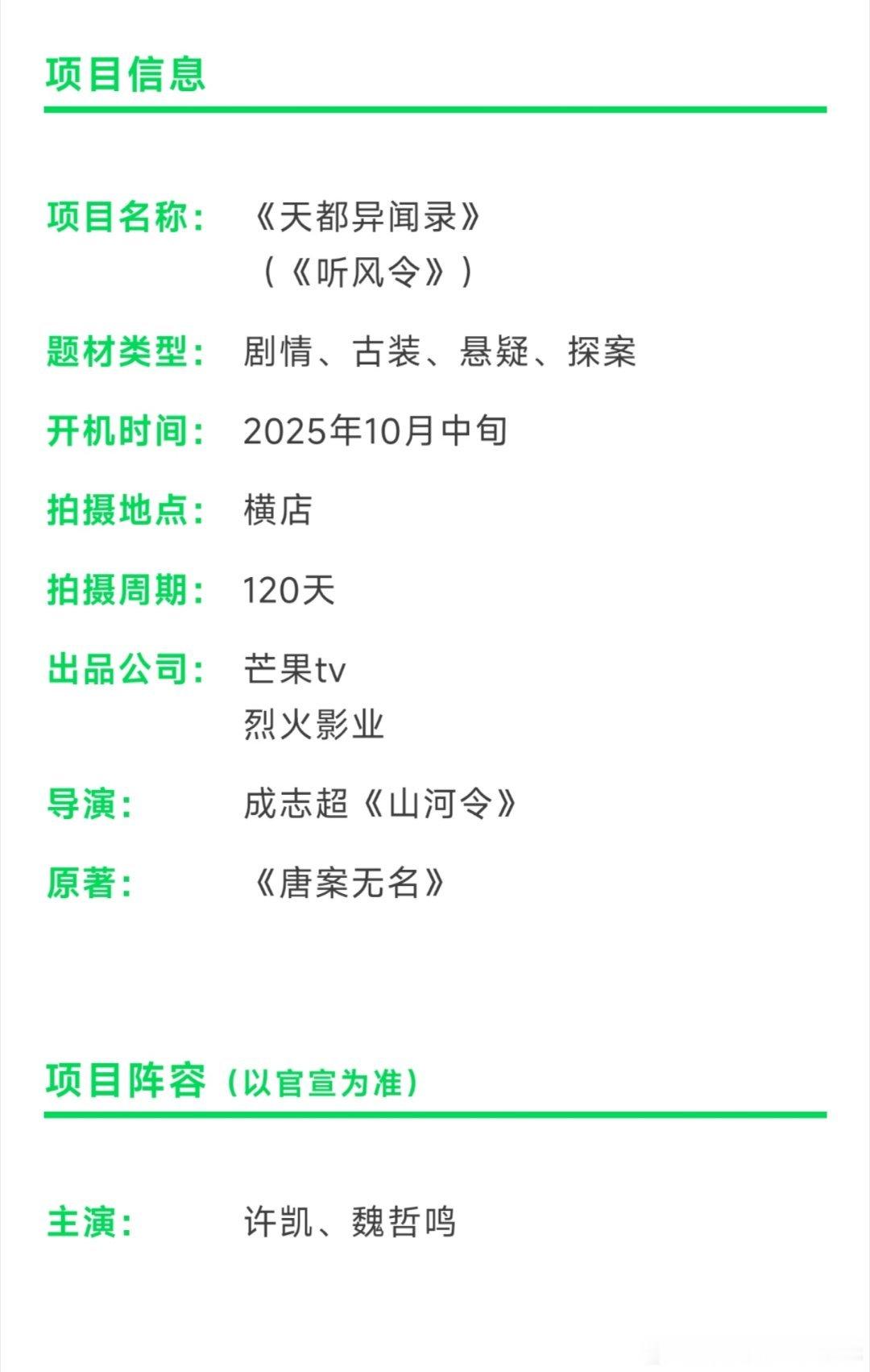 许凯风波过去了,看来没啥大碍了。许凯、魏哲鸣主演,成志超导演,烈火影业出品电视剧《天都异闻录》横店筹备