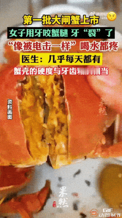 吃大闸蟹吃出牙剧痛?这锅蟹不背,但教训得记! 谁能想到啊,浙江女子买大闸蟹解馋,吃着吃着突然牙齿像被电击一样疼,赶紧跑医院检查,结果是牙齿有隐裂,医生还说就算不吃蟹,这颗牙早晚也得坏! 其实这真不是大闸蟹的问题,主要是吃的时候没找对方法——蟹壳、蟹关节这些硬地方,直接用牙啃太伤牙,拿钳子先钳碎了再吃,既舒服又护牙。尤其是老年人,臼齿槽用了几十年早磨薄了,像骨头、虾皮这种硬东西,千万别用牙硬嚼,很容易把牙磨透、磨坏。 很多人总觉得“牙结实”就随便造,却忽略了牙齿早有小隐患,一顿硬嚼就可能“引爆”问题。你平时吃硬壳、硬骨头的食物,会特意用工具处理,还是直接用牙啃呀?评论区说说~