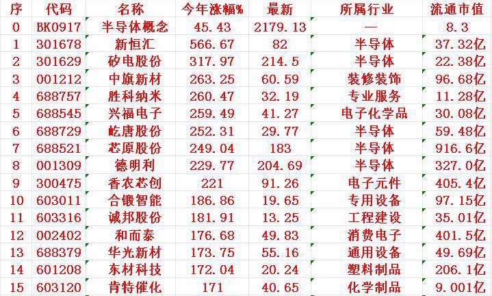 半导体概念,2025年(九个月)以来涨幅最多的200强名单!