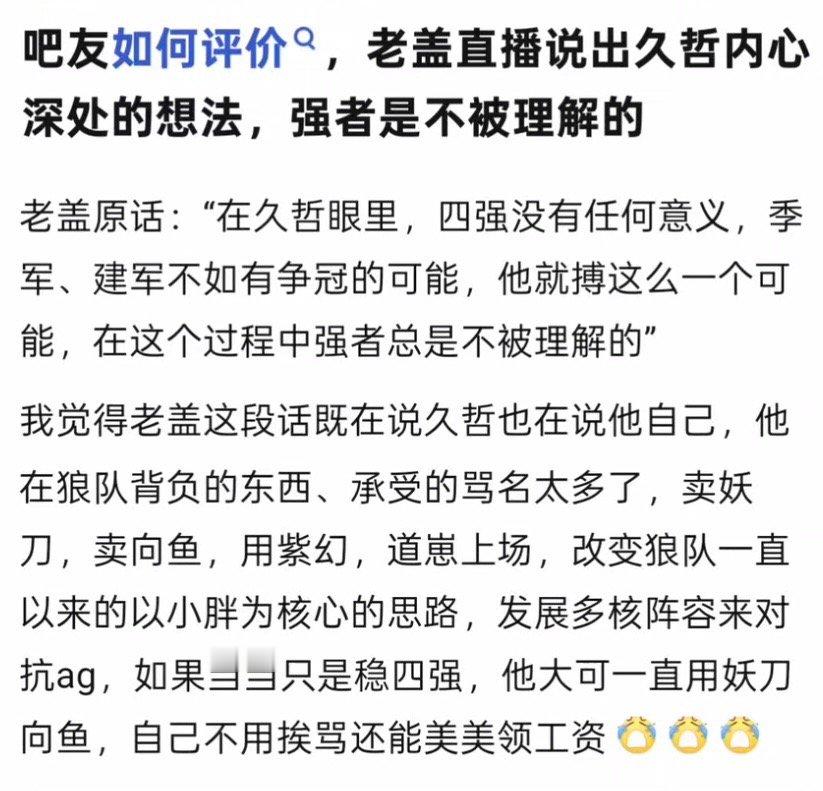 kpl如何评价老盖直播说出久哲内心深处的想法,强者是不被理解的