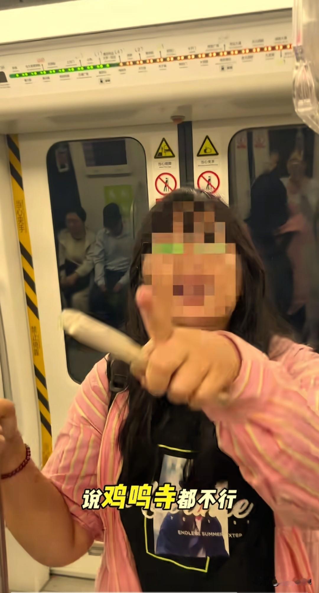 10月4日,有一博主一家到南京旅游,在地铁上博主和她老公老人小孩一家人讨论去哪里。 说先去红山动物园打卡,然后去鸡鸣寺、玄武湖,这时候旁边走过一个粉色衣服戴眼镜女子。 她们正在愉快讨论接下来的行程的时候,这名女子突然冲到她们面前,说等下你们都不要走。 然后飙起了脏话,说她们刚刚在暗讽她,让她们不要走,她要报警,说她们说地铁站点鸡鸣寺这几个字的时候,第一个字是在暗讽她。 女子指着小孩也说他也在暗讽她,博主丈夫后面问,那我请问一下,为什么鸡鸣寺就暗讽到你呢?女子回答道:那我说你是鸭呢,你觉不觉得我在暗讽你?