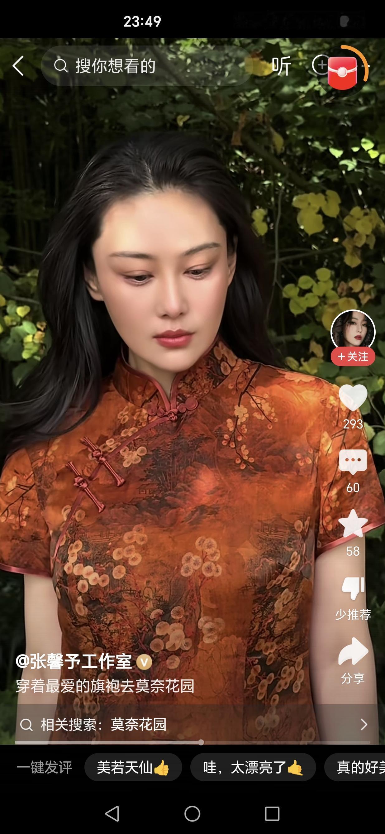 网友吐槽张馨予的双眼皮太宽了,一看就像割的,鼻孔是三角形的……,也像……人造景观[黑线] 嗐……,网友真是……,没事看那么仔细干嘛? 看美人就讲究个雾里看花,追求一种感觉,不要吹毛求疵嘛[狗头]。 而且,人家不像有些艺人,粉厚得像涂墙,美颜滤镜一层又一层[黑线]。张馨予至少不用滤镜,还用了高清镜头,妆容也干净,颜值很真实很ok了。