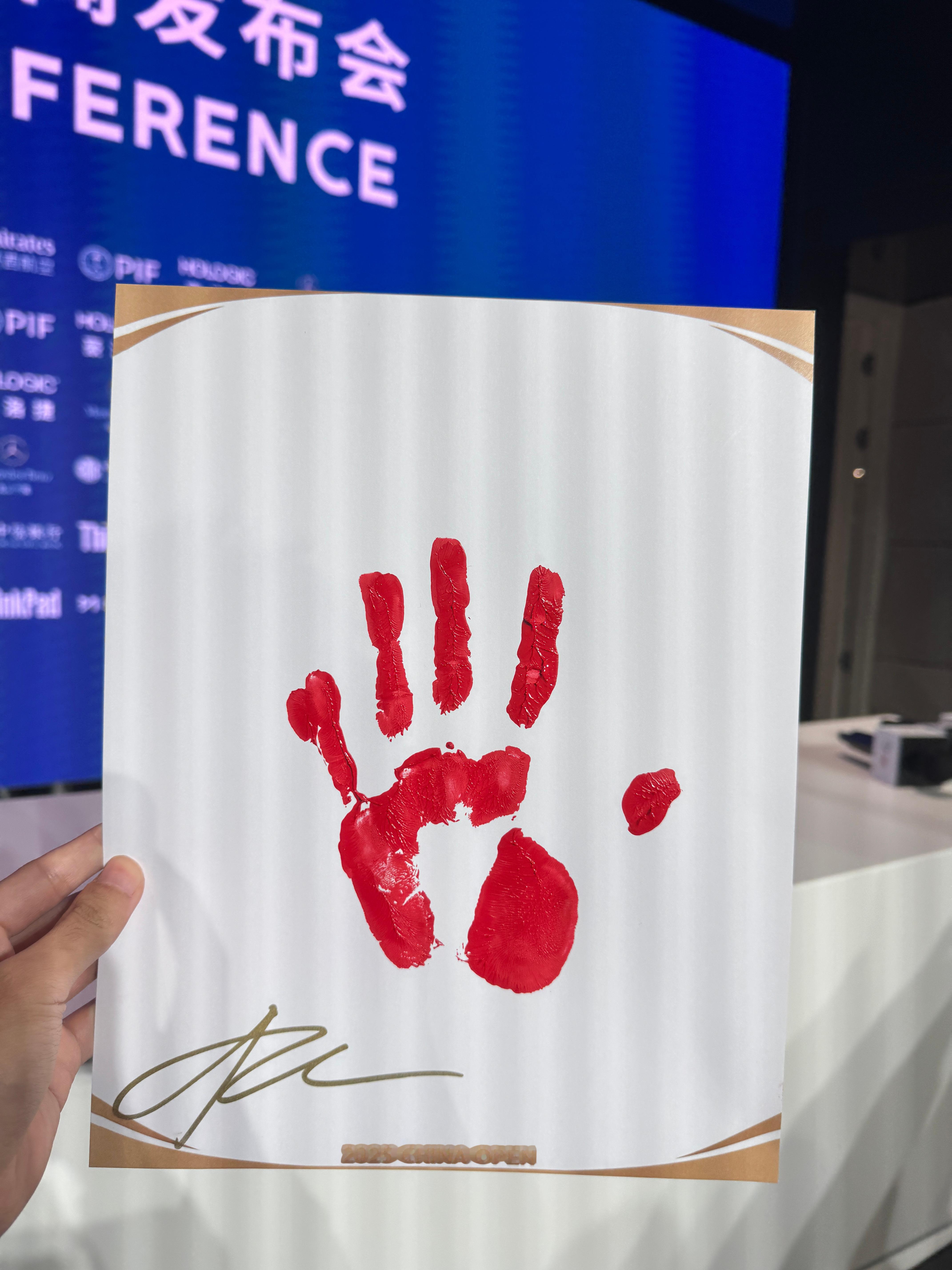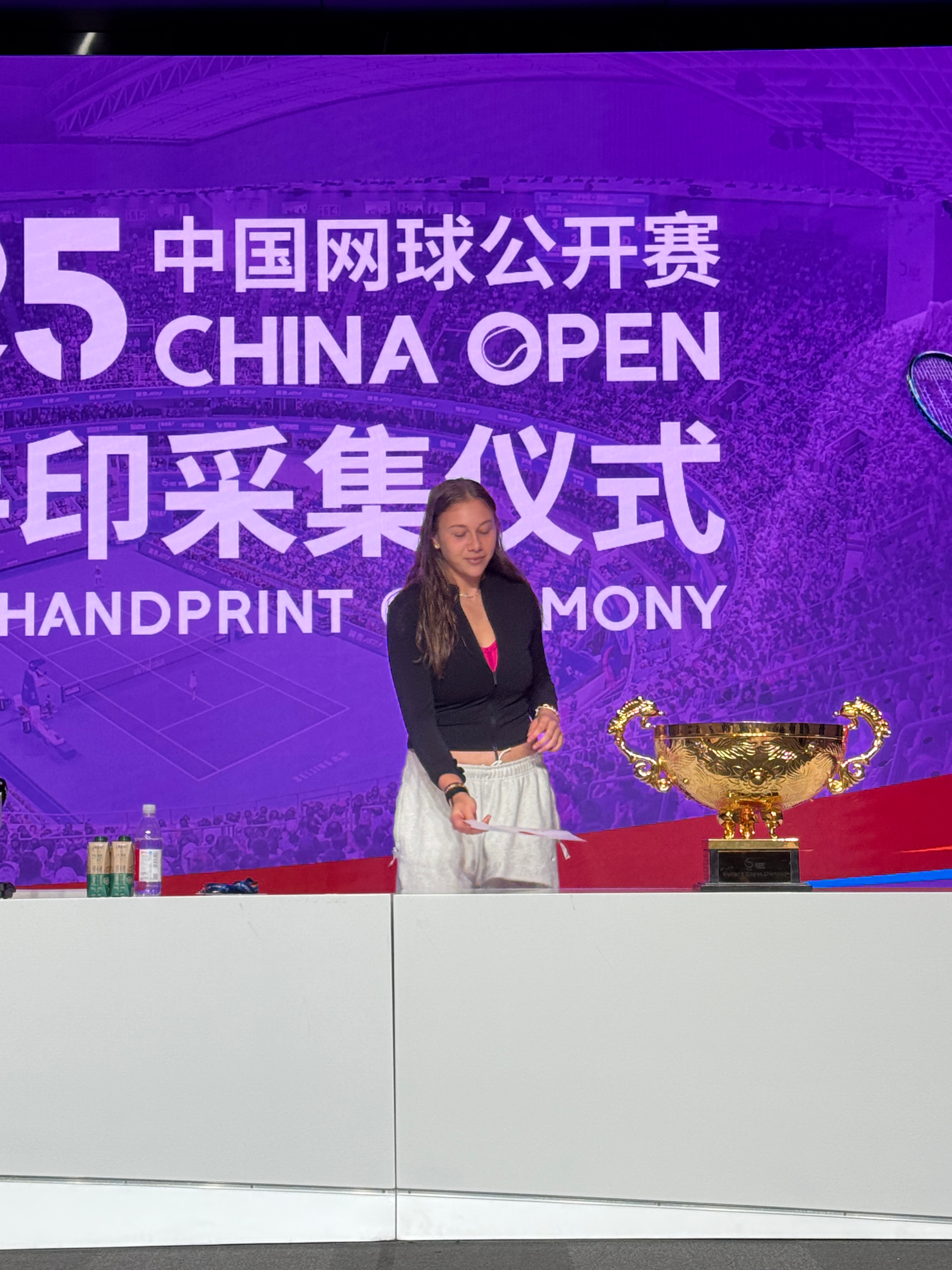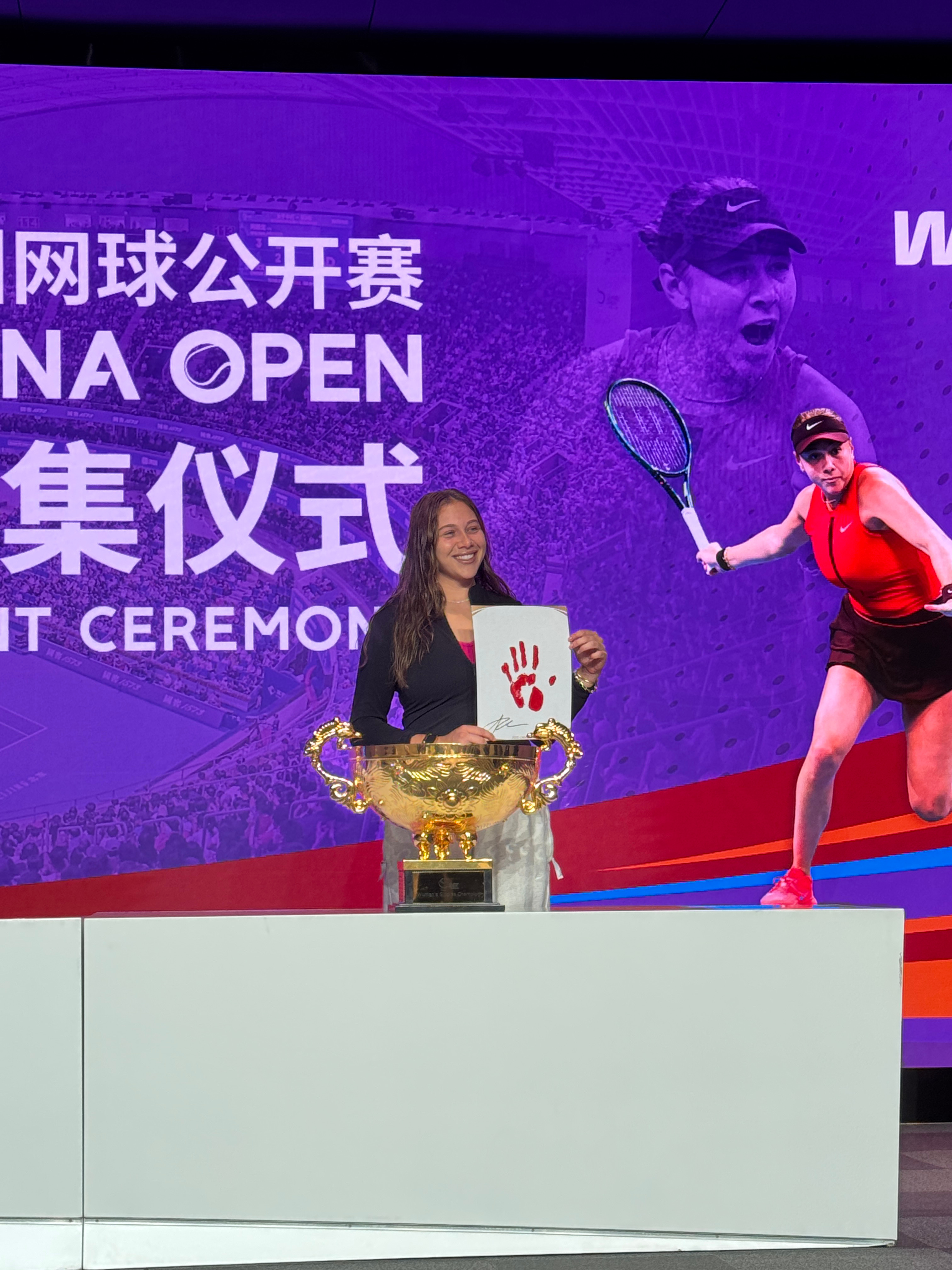 阿尼西莫娃!!!中网冠军🏆手印时刻!!!拿着印有Amanda手印+亲笔签名的纸,留念一张!