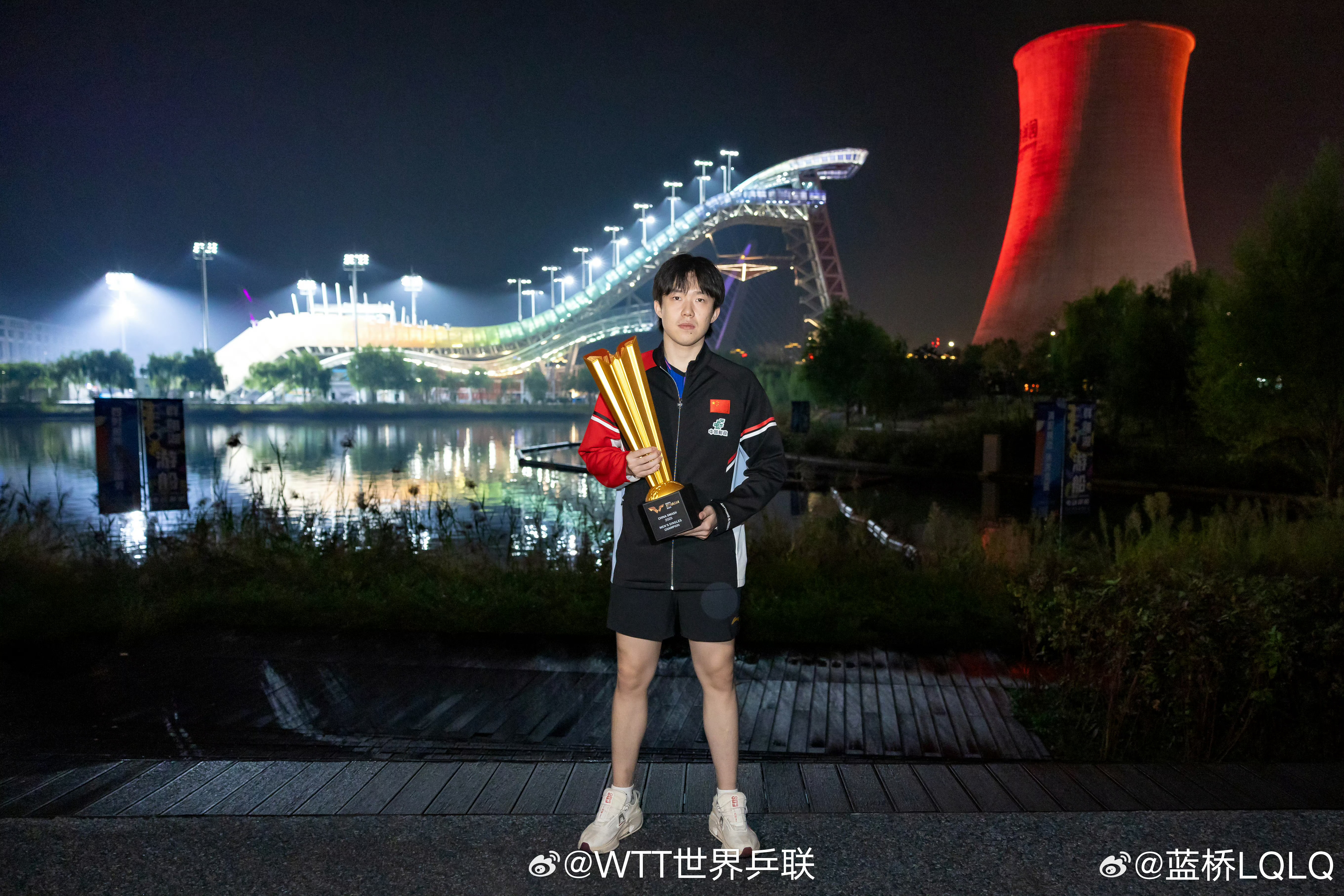 男女单冠军中间隔着银河,能再站个莎莎吧。而且拍照的时候,王曼昱拿不动奖杯,王楚钦