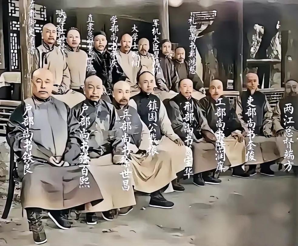 晚清时期政府主要官员集体照,都是省部级干部,个个衣着光鲜亮丽,脑门子油光发亮,看