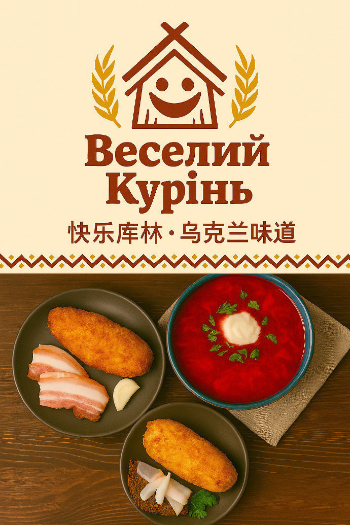 Веселий Курінь 定位为面向年轻群体的本土文化潮流快餐。它不仅提供地道的乌克兰家常风味,更通过“库林守护者”这一原创文化符号体系,打造可持续发展的品牌IP与消费者情感链接。