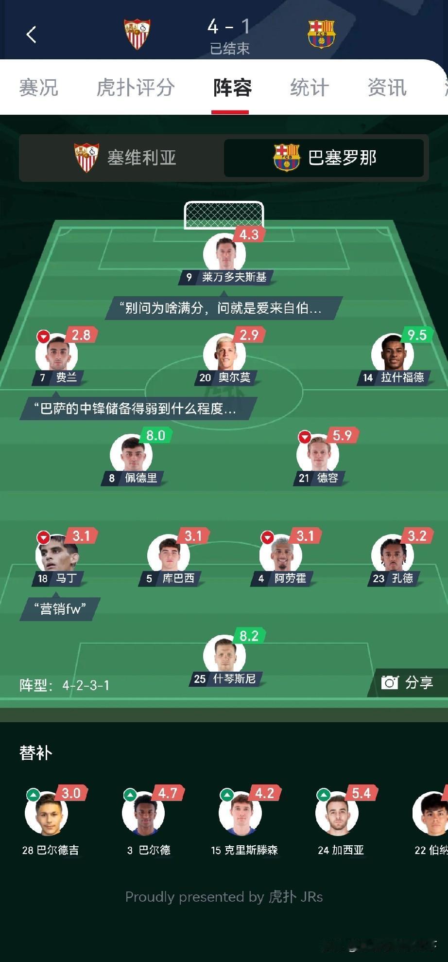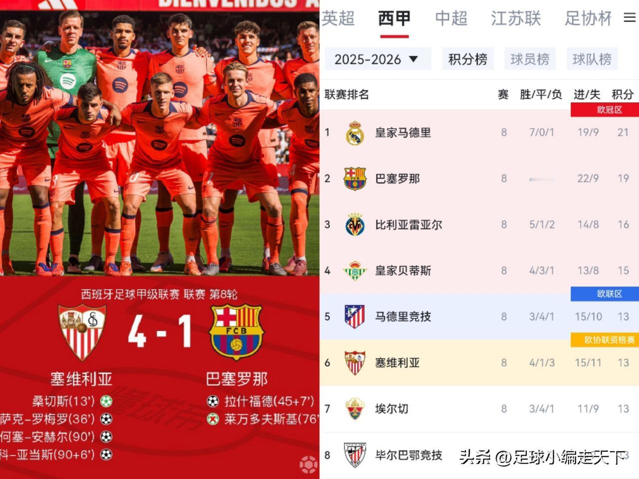 巴萨钉在耻辱柱上的一天,输给了19场没赢过你的对手,波兰双子星确实太老了,一个攻