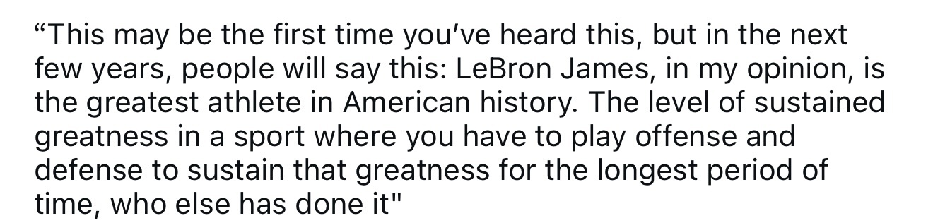 美国著名演员莫里斯-切斯纳特:勒布朗-詹姆斯不仅仅是NBA历史最佳球员,也是所有美国运动员中的历史最佳!在篮球这种需要兼顾攻防两端的运动里,能如此长时间保持这种巅峰级别的伟大,还有谁能做到?