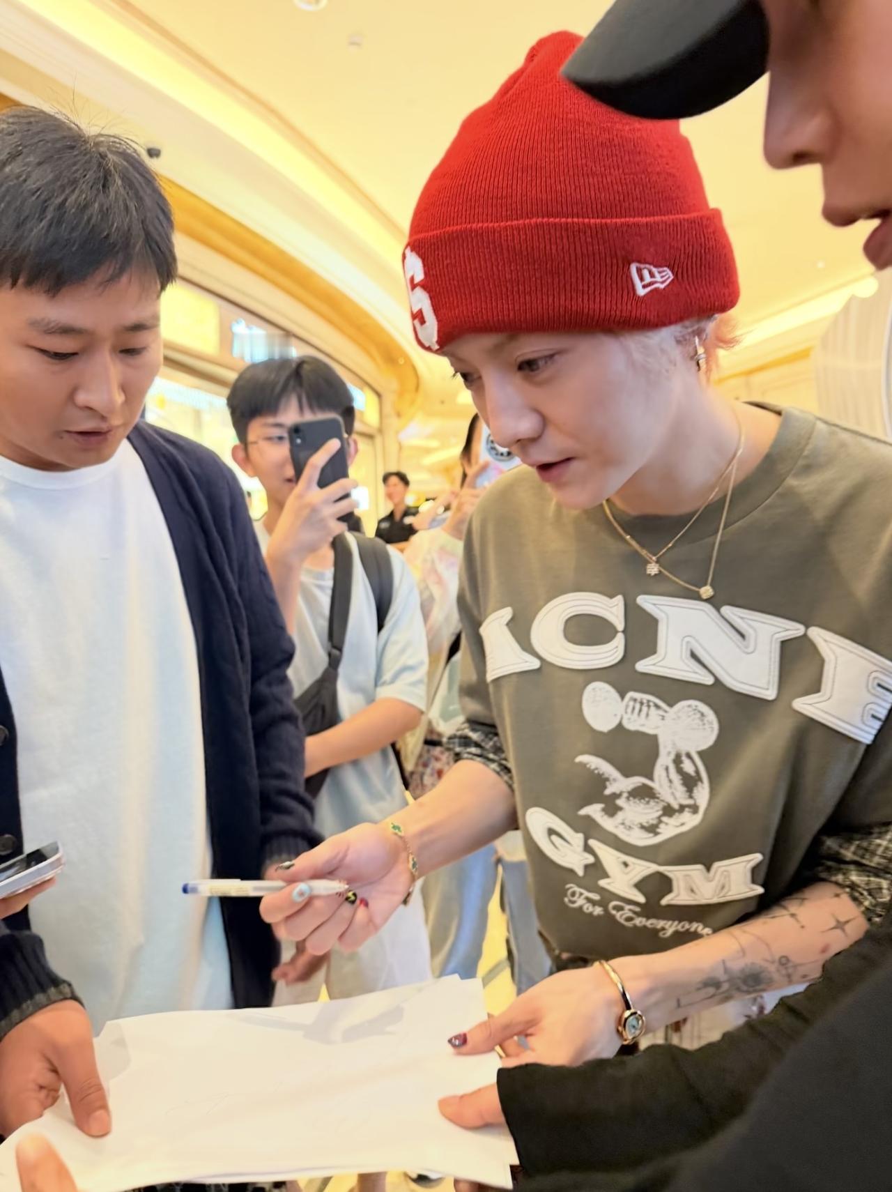 10月5日,有位网友在澳门偶遇鹿晗,他正在低头签名,然后还说了声谢谢,好绅士啊。