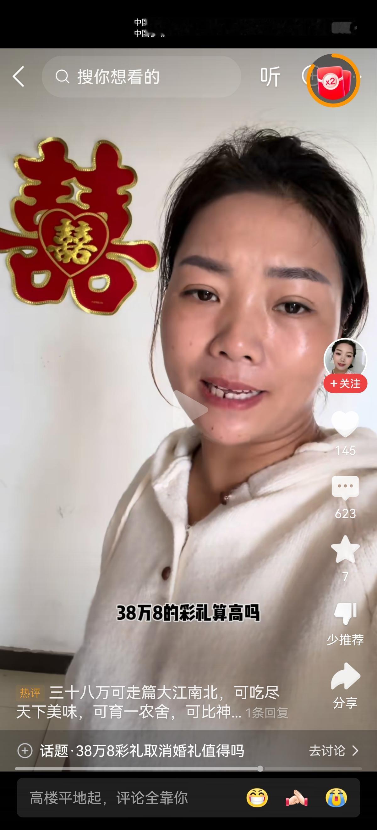 开头说因为彩礼婚礼取消了,就想了解了解原因,结果一看…… 这彩礼确实要的可以,开口就38.8万,少一分还不行。 这彩礼要的高不高?女方说一定也不高,男方满足不了这个要求,女方直接一票否决,取消婚礼。 这是干啥呢?大单生意吗? 友友们,你们那边彩礼一般情况下要多少?38.8万高还是不高?彩礼事情 彩礼谈崩 彩礼谈崩 彩礼差异大 彩礼漫天要价 彩礼过高问题 彩礼之争