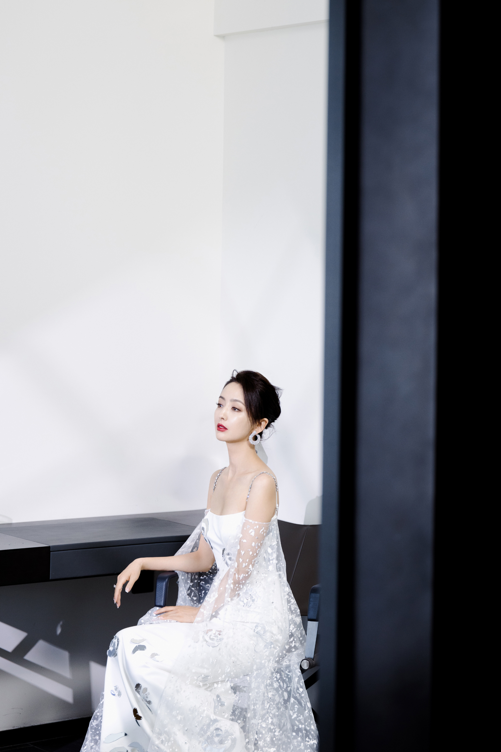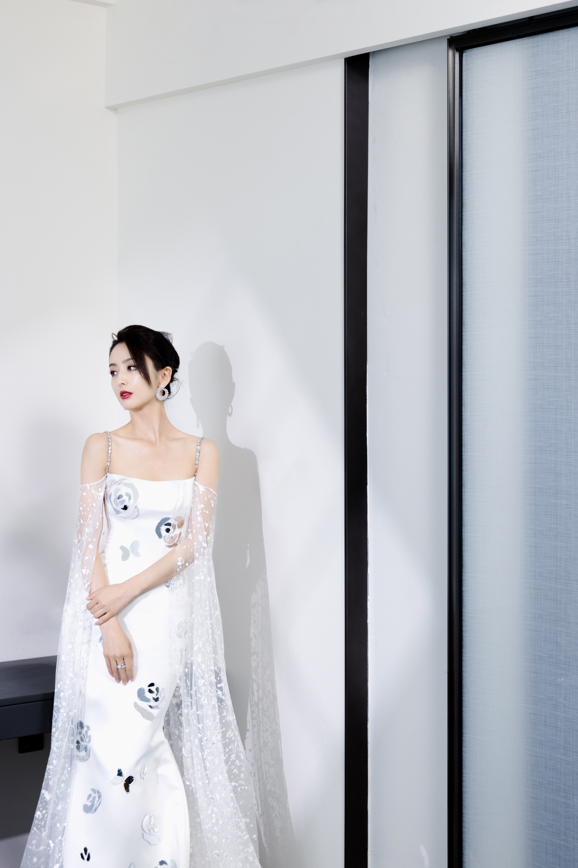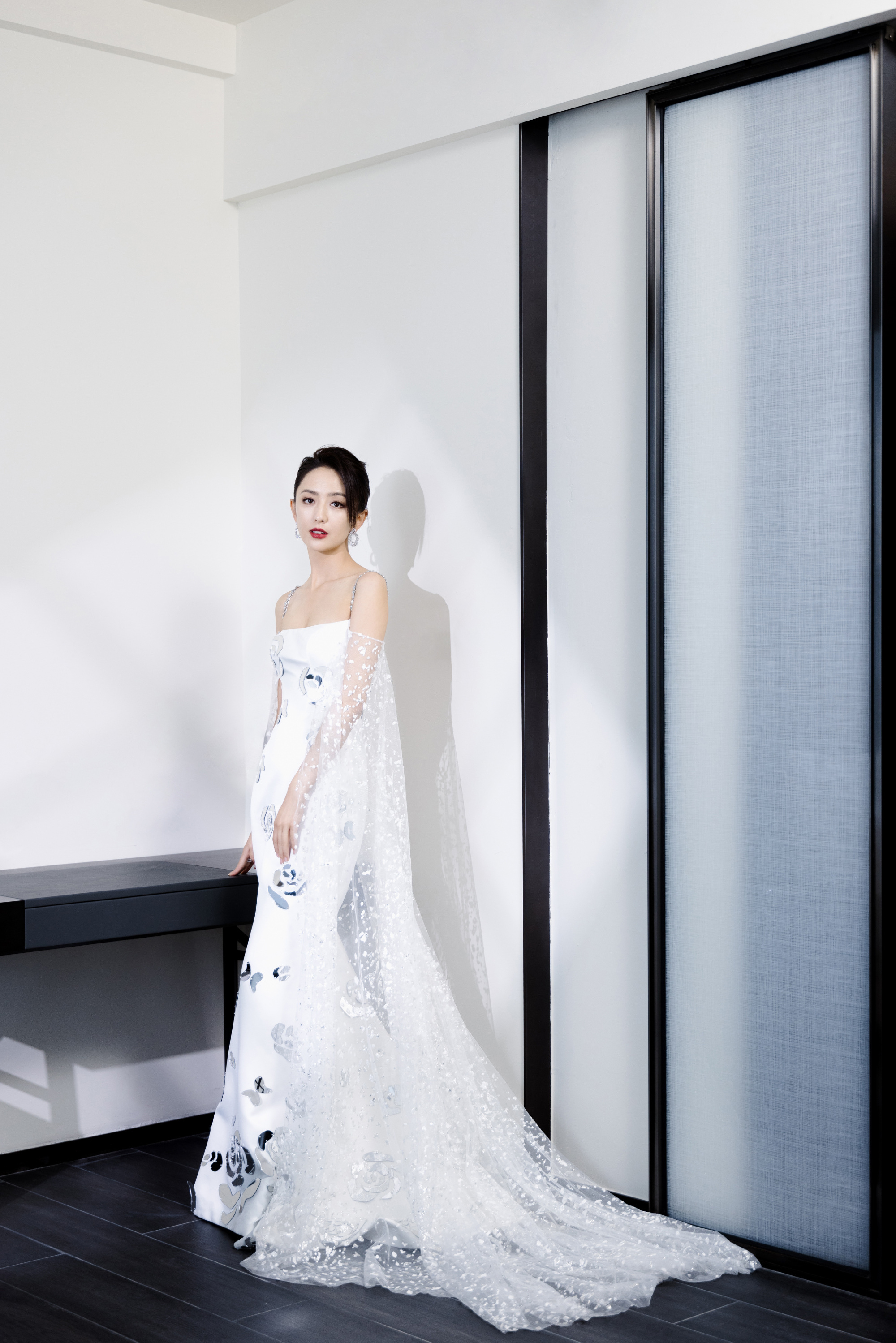 佟丽娅,国风白色吊带长裙,精致优雅再现