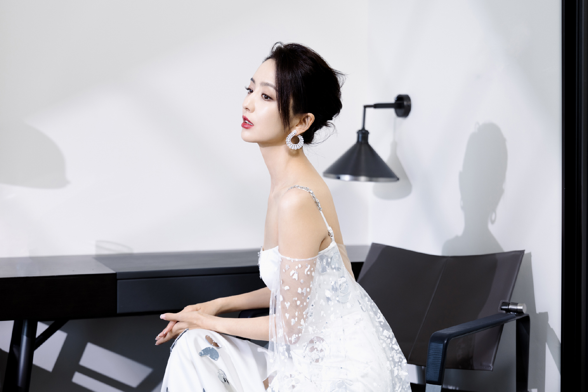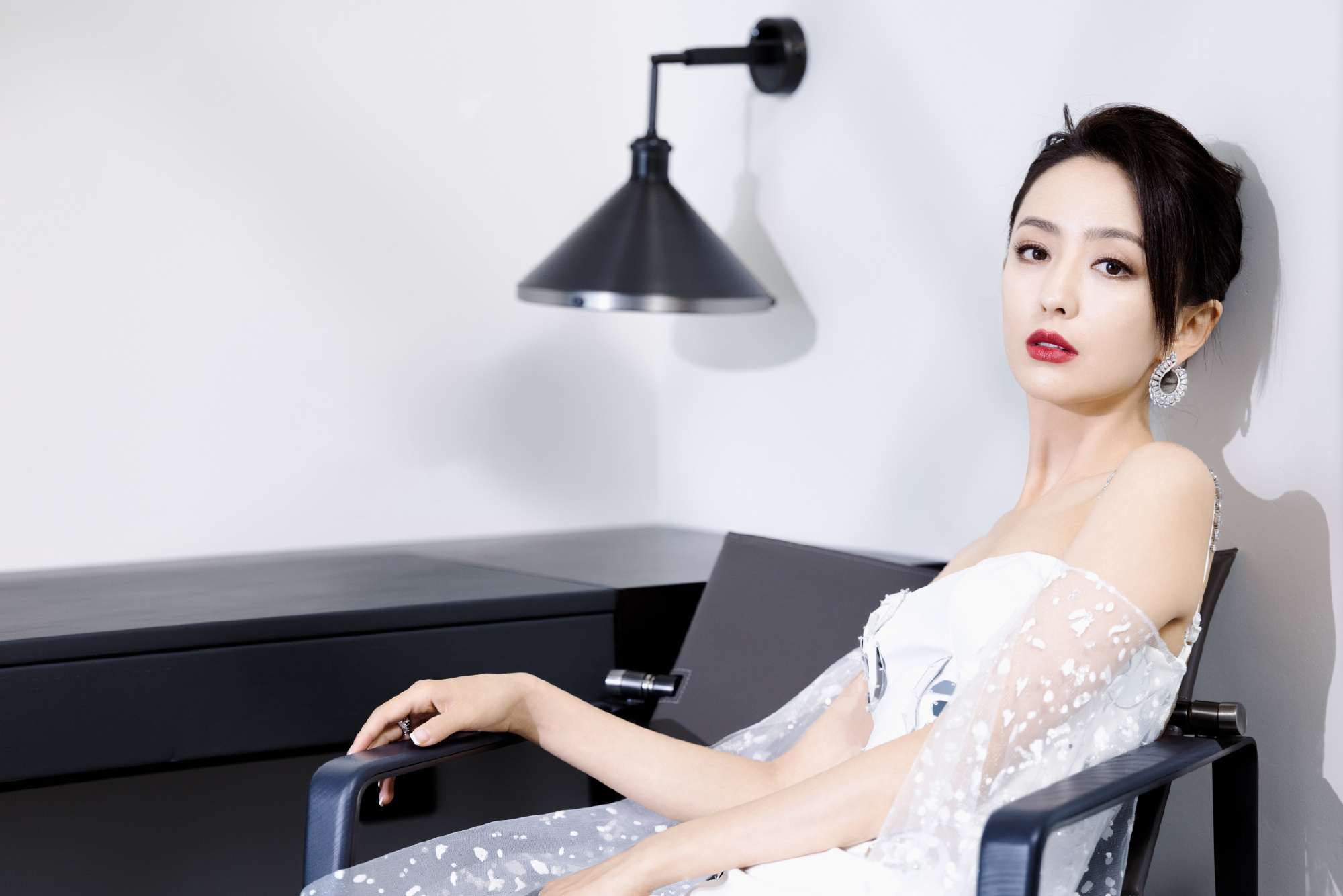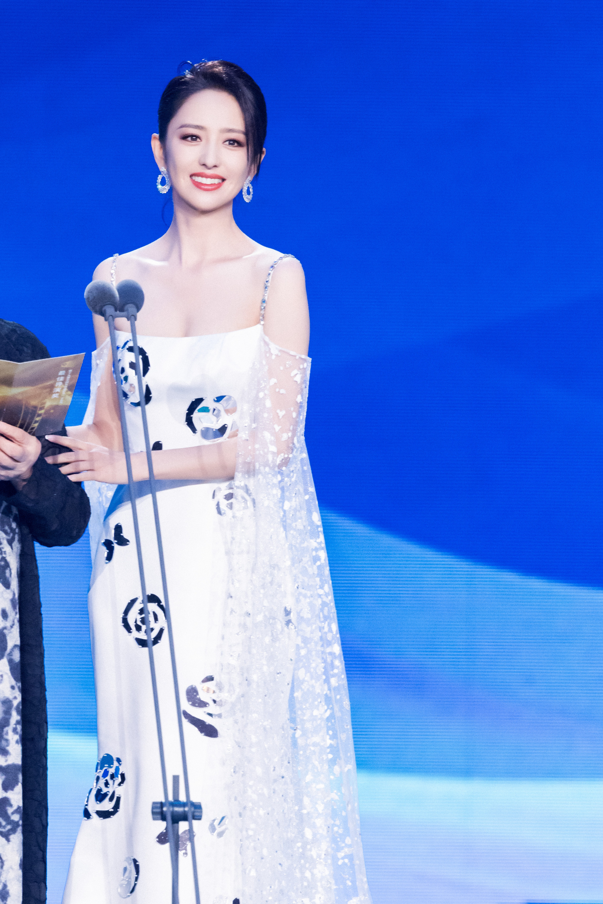 佟丽娅,国风白色吊带长裙,精致优雅再现