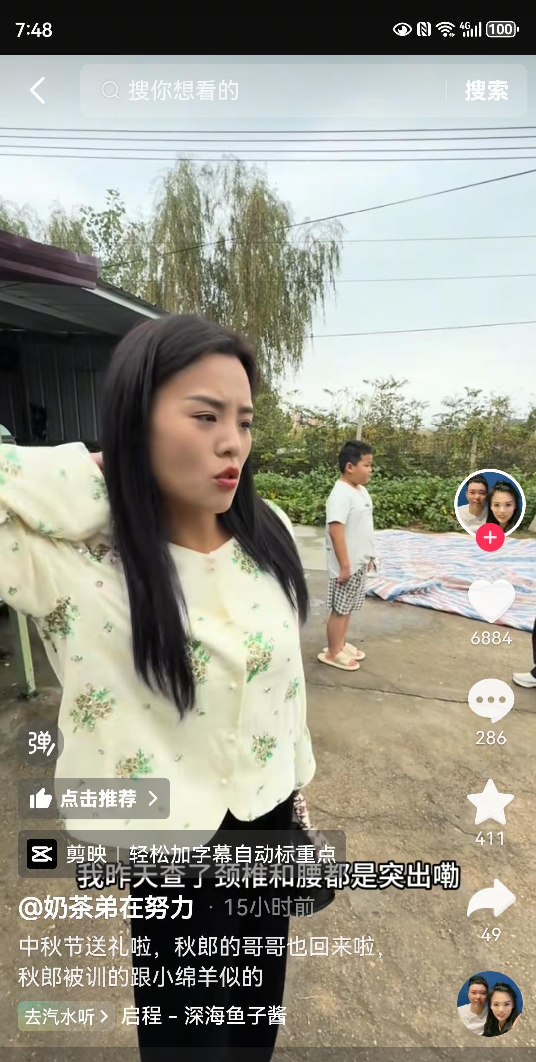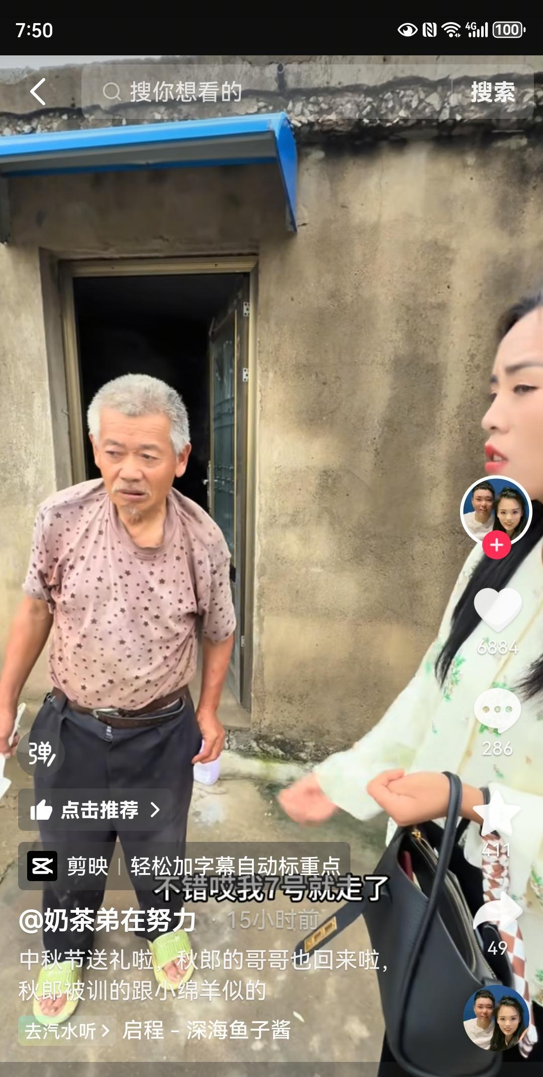 奶茶弟两口子疾病缠身。 中秋节,江苏有送礼的习俗,大双现在是翻身农奴把歌唱,有的是钱,出手阔绰。这不先回婆家给公公婆婆一人一千块钱,再回娘家给养父母一人一千,最后去亲爸妈家还是一人一千。没买礼品,就当面数钱,一家两千,既有素材又有面儿。 发现个有意思的事,大双娘家婆家都只有老爸在看家,女人出去搞钱,包括奶总家族都一样,男主内,女主外。是不是奶总家族的前夫们也学俩老人那样,只低头在家看家干农活,不管女人的任何事,也能不被离婚,家庭圆满,忍忍几十年就熬过去了? 貌似他们马上又要去广州带货,难怪现在不光奶茶弟身体欠恙,一堆的毛病。连大双也一样,又是颈突又是腰突,两口子真是有缘,生病都扎堆。