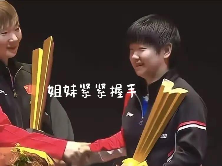 莎莎这一幕让人感动! 大家注意到颁奖仪式这个细节吗?亚军需要先退场,这个时候,莎莎特意把手腾出来,和曼昱握手,祝贺她获得冠军,两人相视一笑,一切尽在不言中! 这一幕很多人看了很欣慰,海产姐妹并没有外界所说的那么不堪,关系其实好着呢!