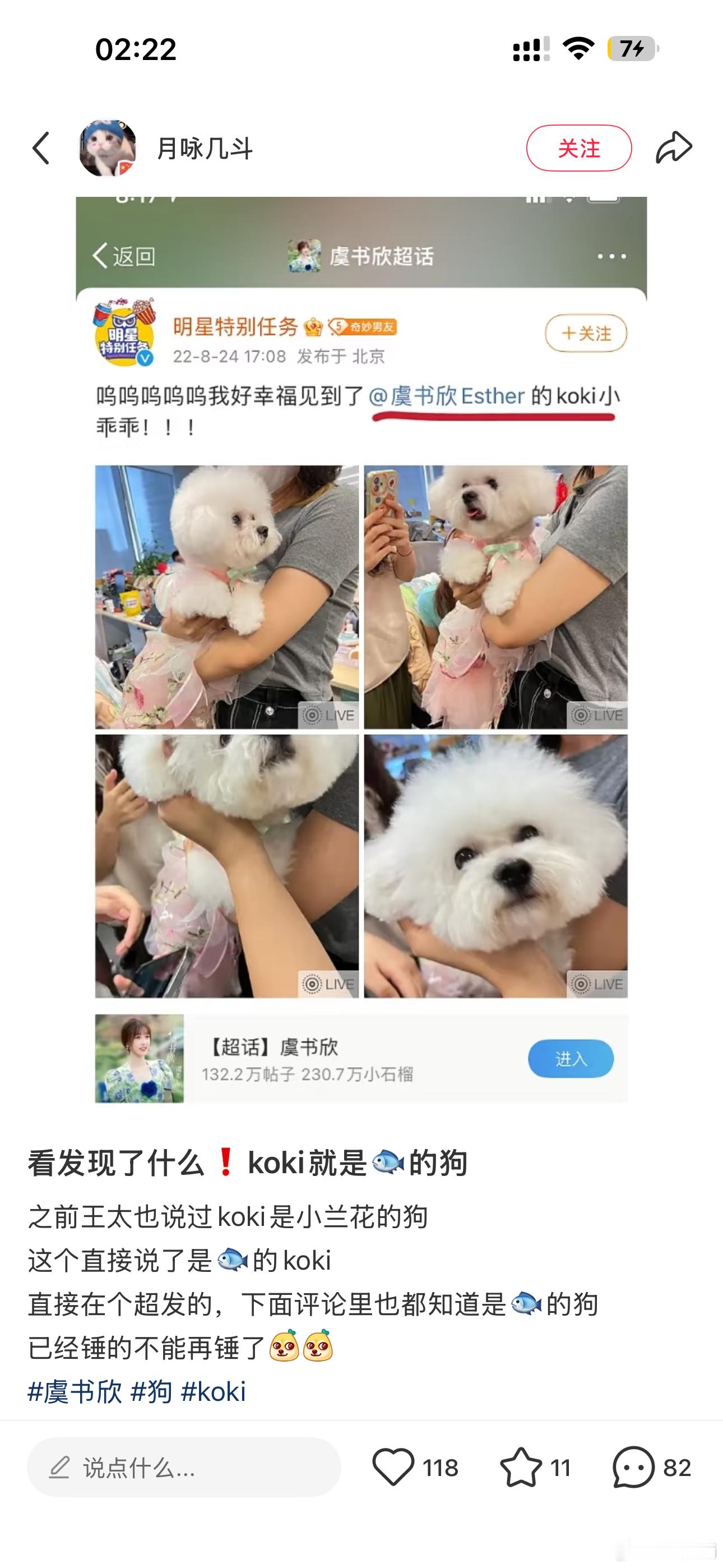 虞书欣苍兰诀时期有个狗狗账号还帮她扫楼,还经常跟狗狗营业(不过账号说自己不是她的