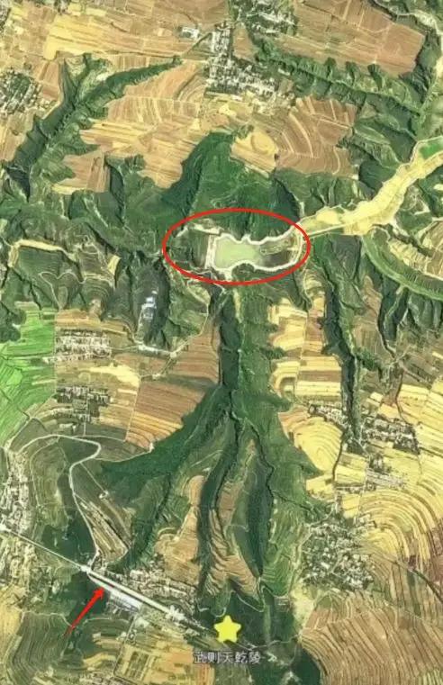 不得不说,1400年前为武则天选陵的人太可怕了。这是卫星拍的,武则天陵墓周边的照