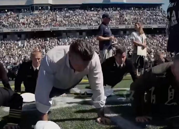 美国战争部长带着3068人一起做俯卧撑破纪录,几百号将领跟着一起卧倒,整齐划一地