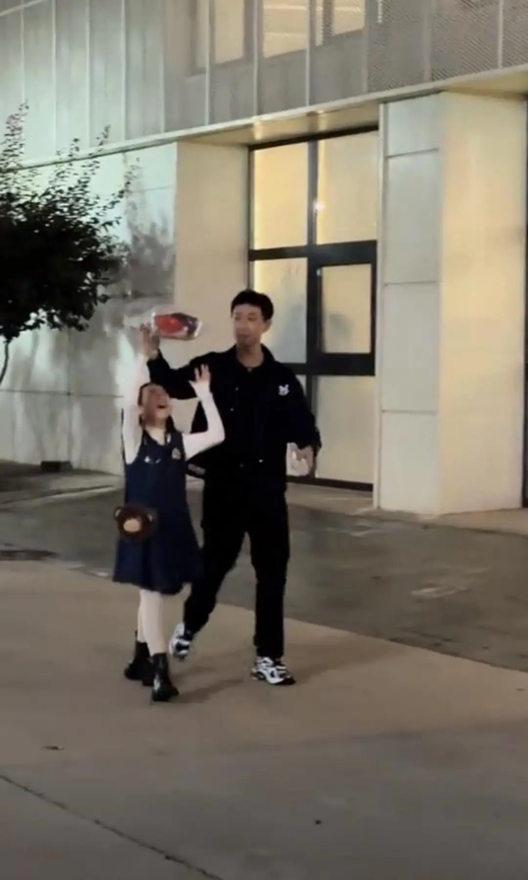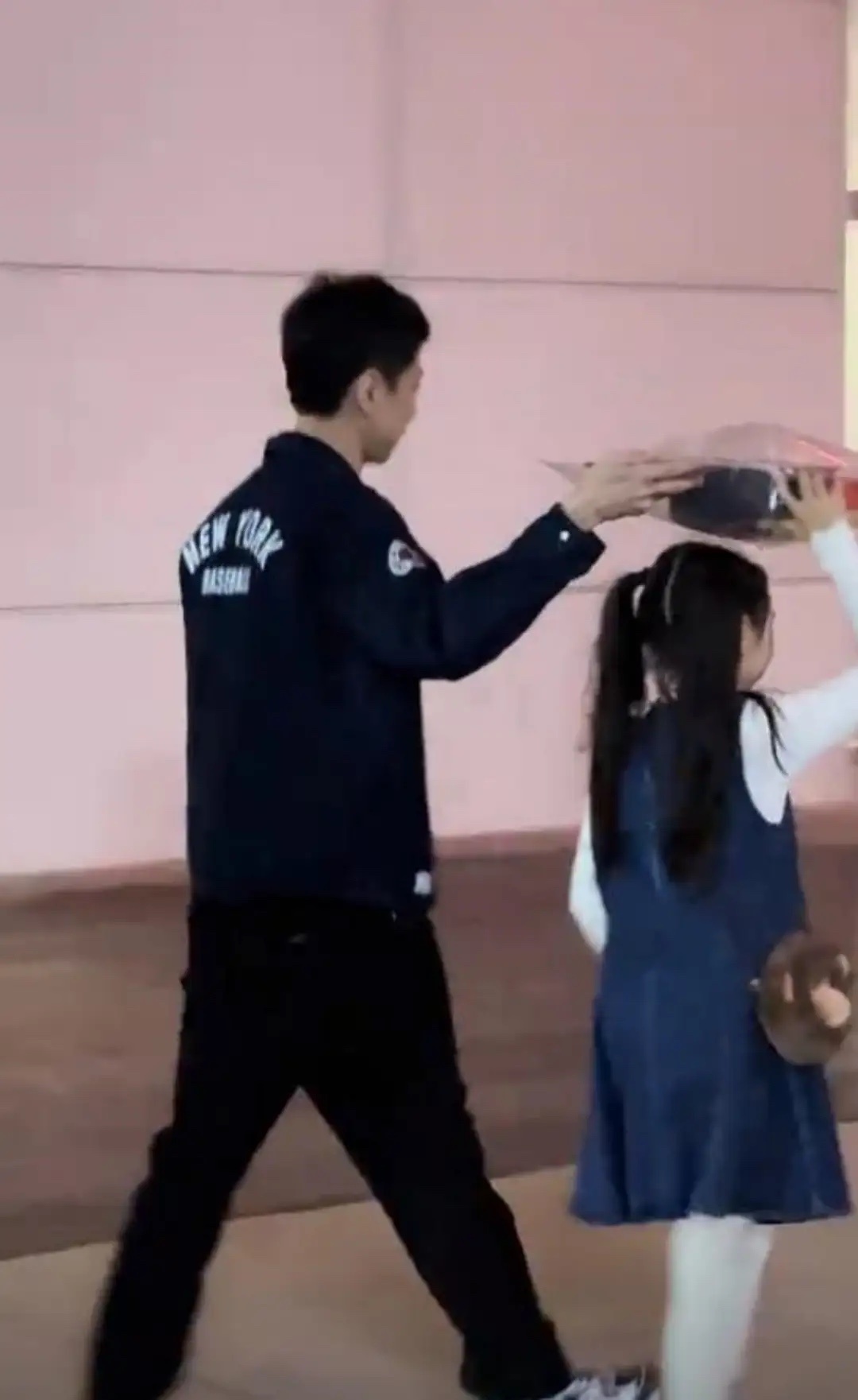 董璇带女儿探班新爸,张维伊贴心用手给酒窝挡雨,让人越看越顺眼!