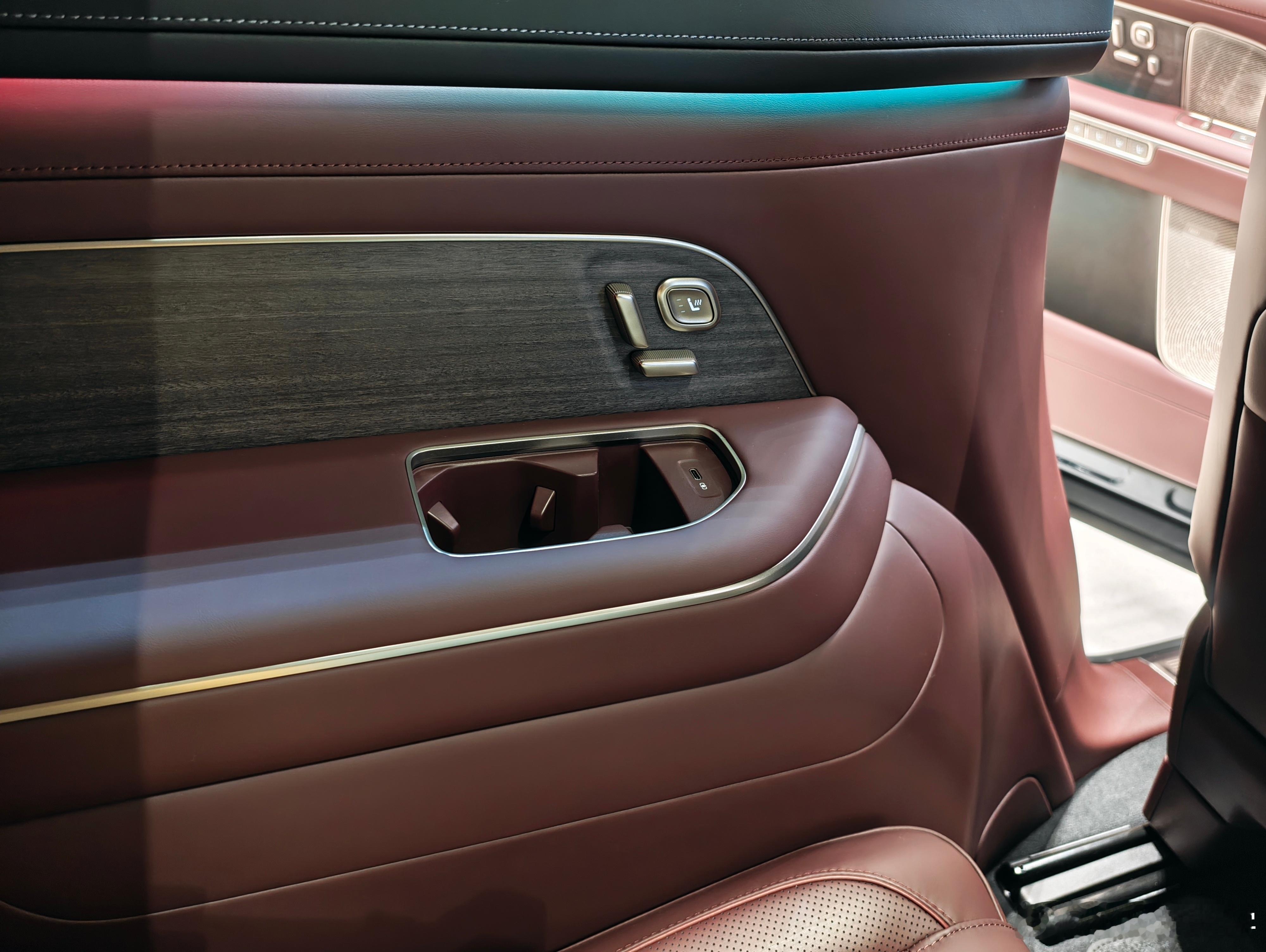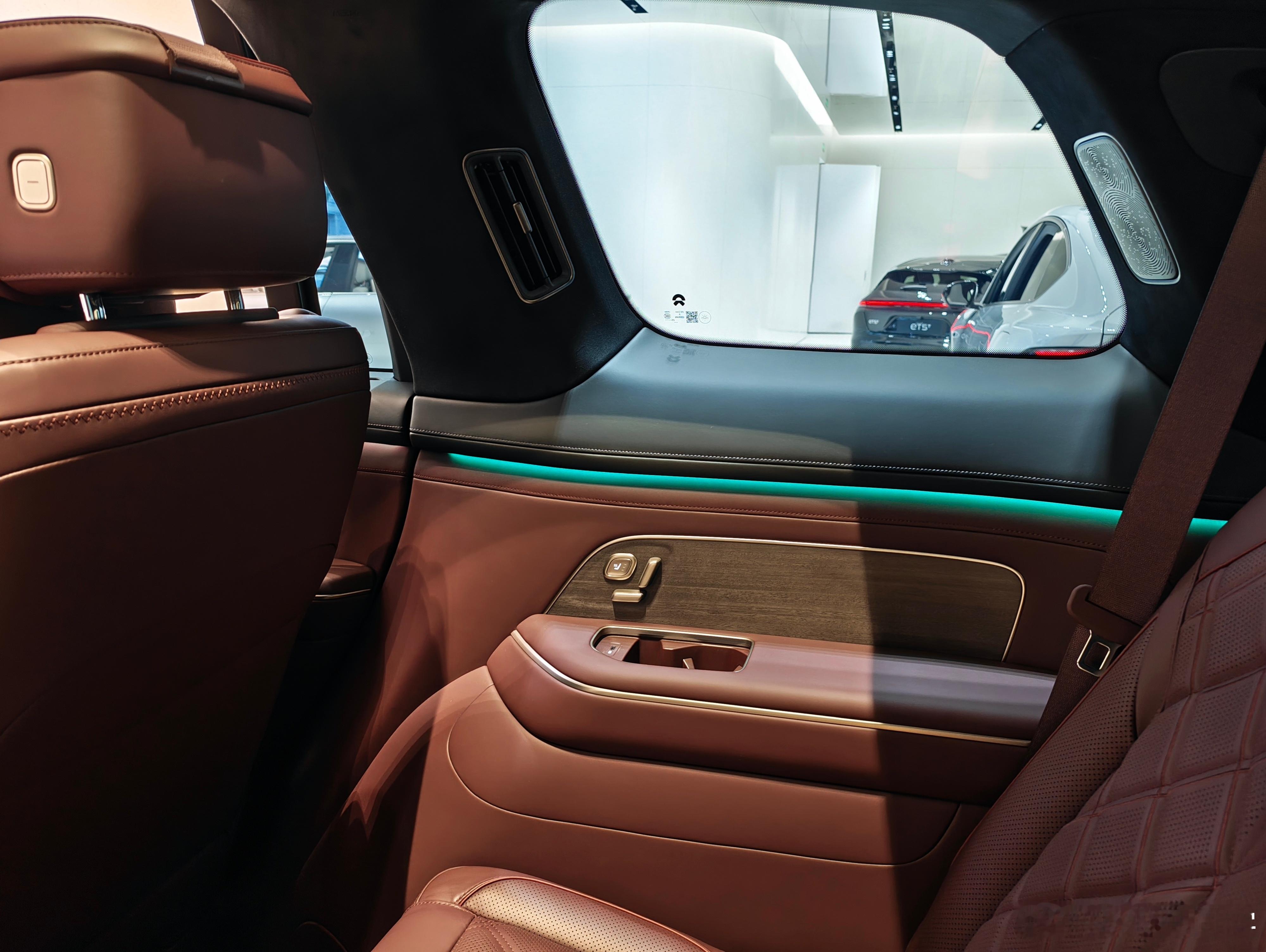 ES8第3排扶手这边的材质做的还挺好,有个细节,很多MPV第3排扶手这边的材质已经和后备箱的材质一样了,并没有皮革包裹,也没有座椅加热和调节的什么事儿。