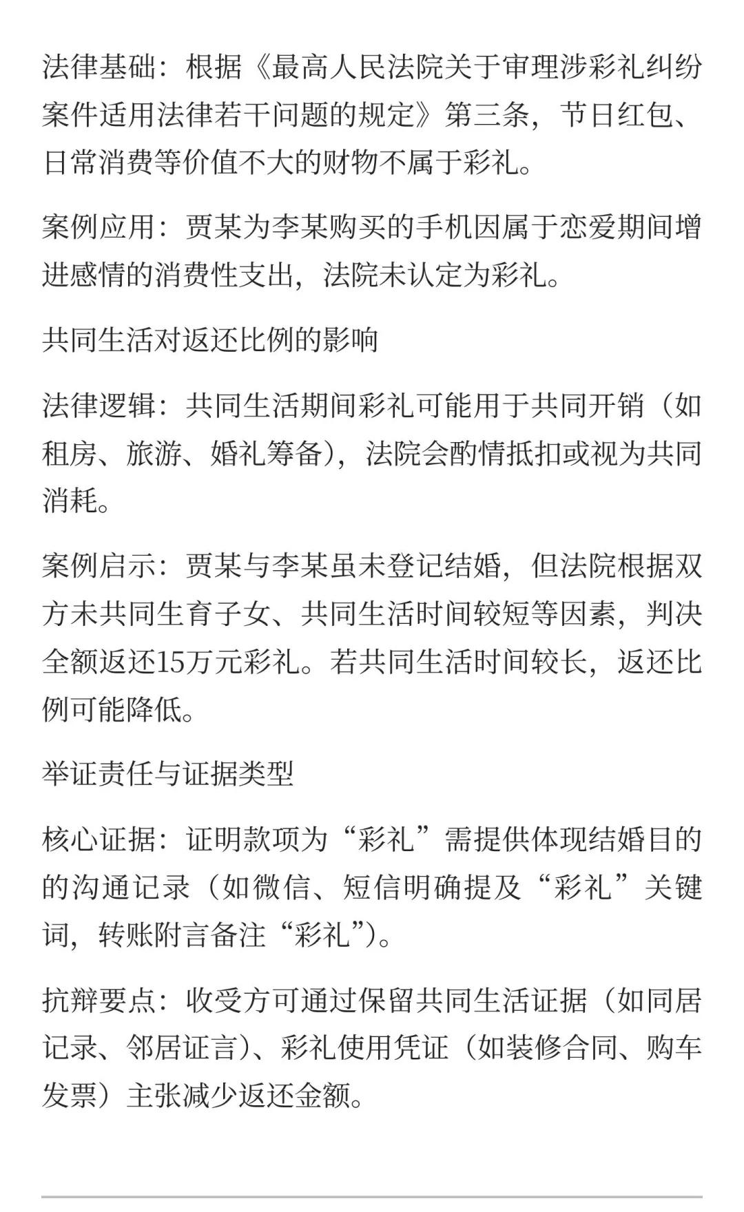 爱情与法律交织:彩礼纠纷中的“情”与“理” 彩礼纠纷中,彩礼性质认定以结婚为目的的赠与,小额消费为情感赠与。未登记结婚时,原则上应返还,共同生活时间长、生育子女多的可酌情返还。法律依据包括《民法典婚姻家庭编解释(一)》和《涉彩礼纠纷规定》。 法律服务 律师咨询 律师 北京律师 法律咨询 彩礼纠纷 彩礼 彩礼返还 彩礼认定