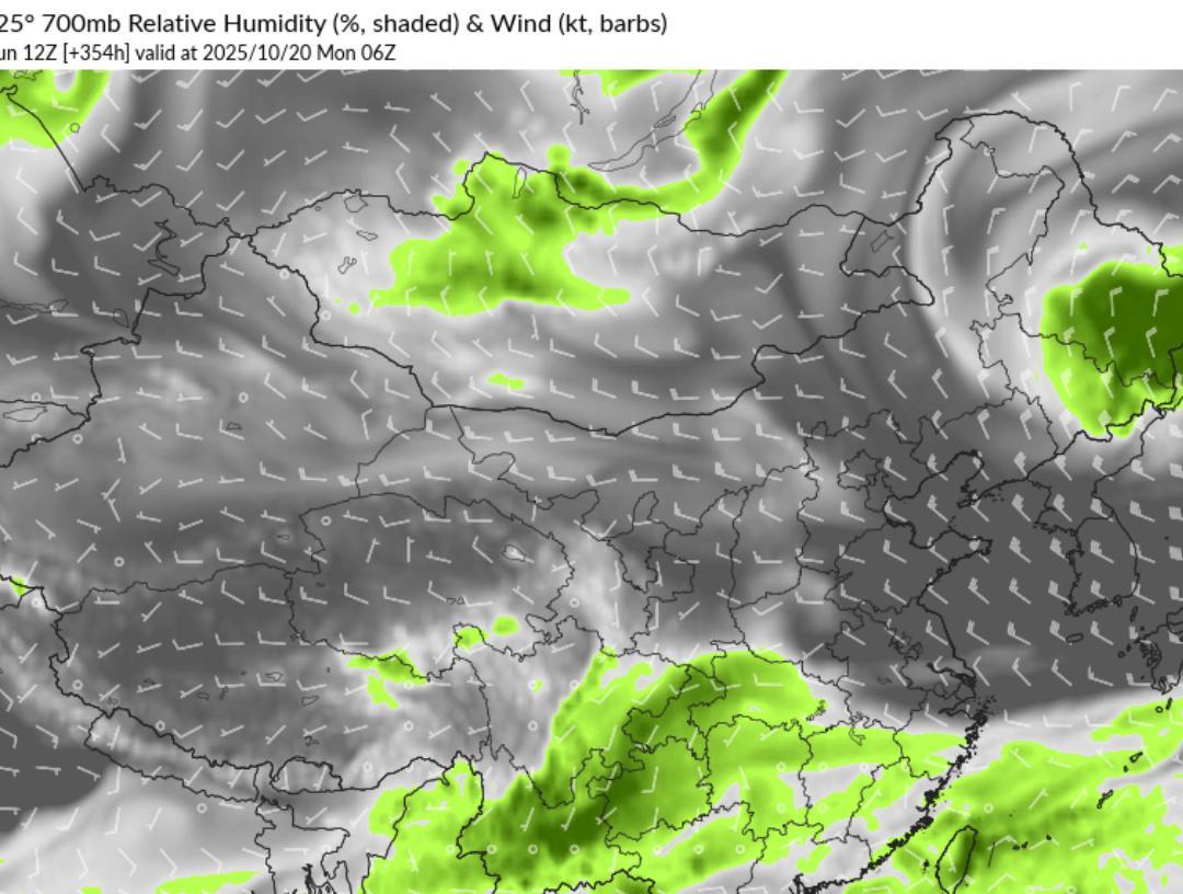 从今天最新的数值预报来看,10月20日华南广东、广西以及湖南南部、江西南部依然