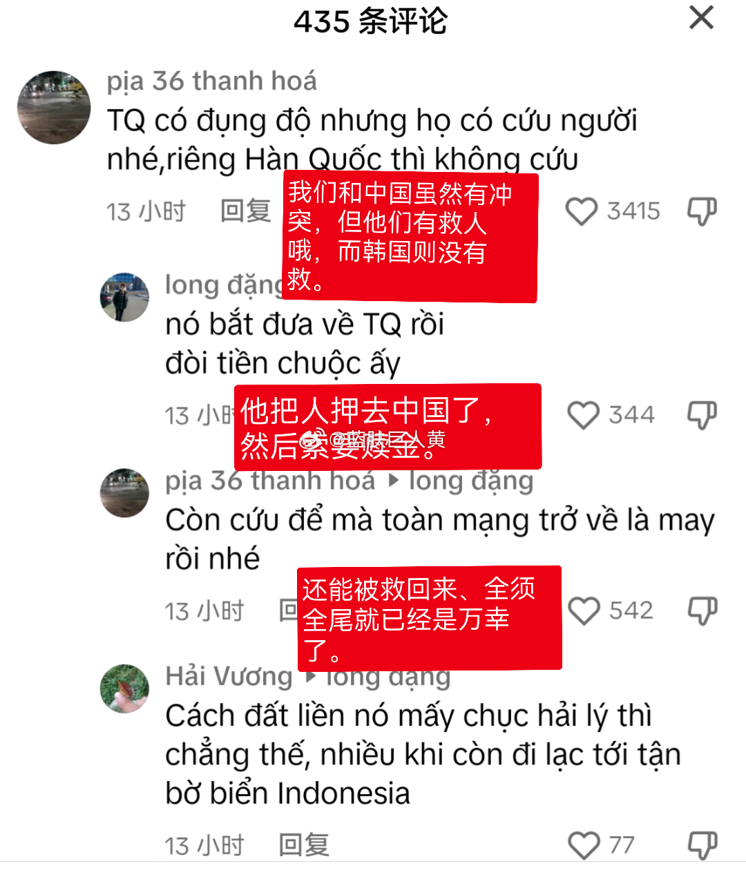 10月4号,一艘韩国油轮把越南捕鱼船给撞沉了,然后韩国油轮扬长而去也不营救。现在越南举国上下又开始痛骂韩国[吃瓜]