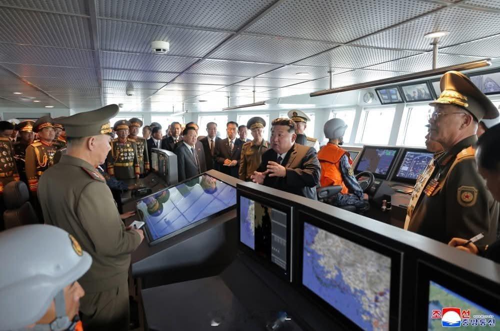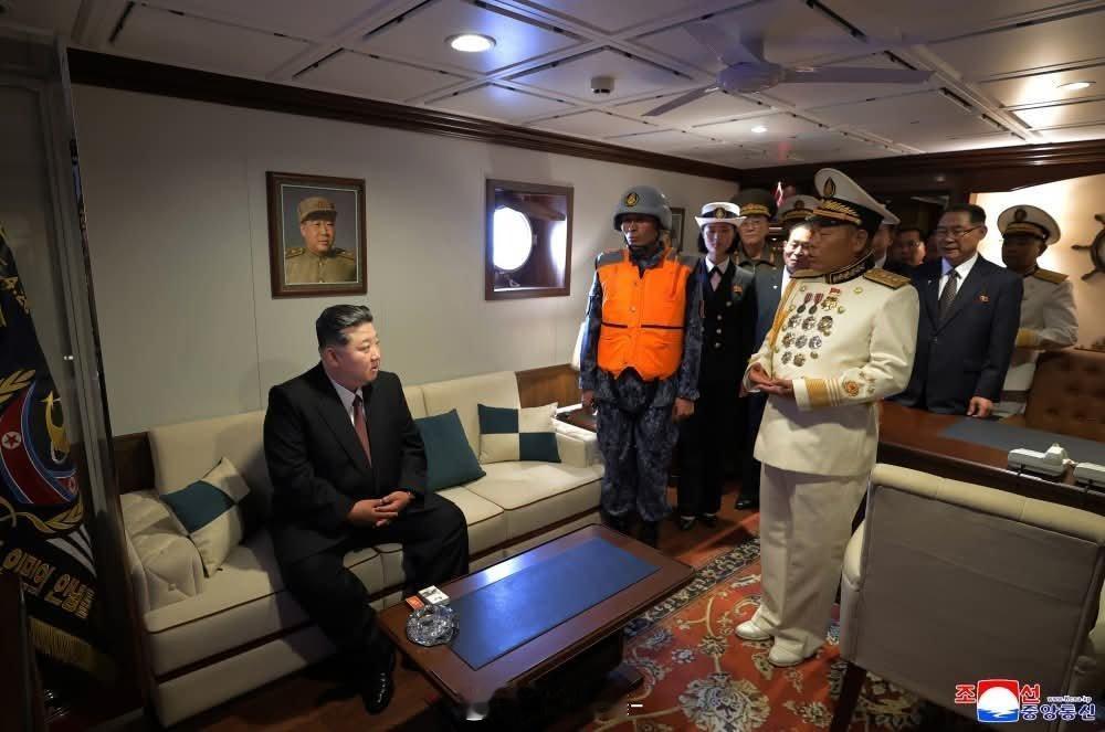 【朝鲜官方消息】敬爱的金正恩同志依照武器装备展览会“国防发展-2025”第二天参观行程,同开幕式参加者一起参观了“崔贤号”驱逐舰