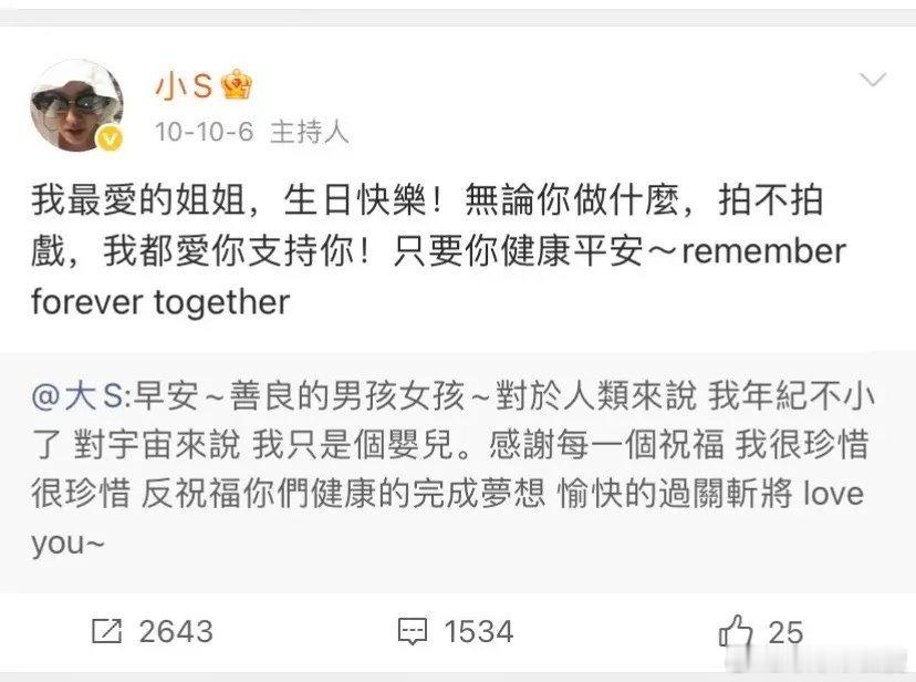 大S徐熙媛走了后第一个生日妹妹小S、好友阿雅纷纷发文纪念…… 大s走后第一个生日