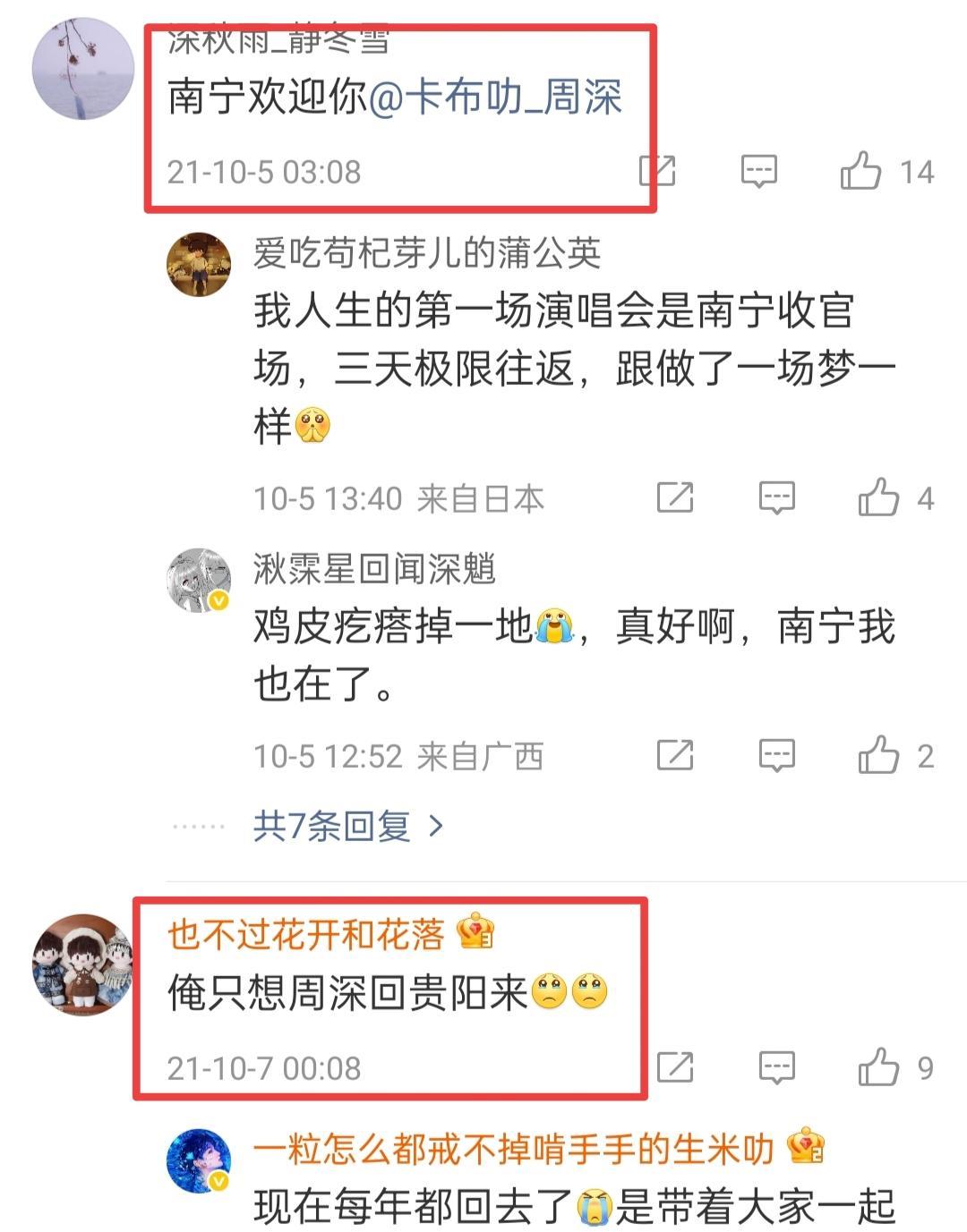 周深真的是在一步步走到大家的家乡去唱歌! 看到2021年米子发的视频,想听《北京欢迎你》,然后评论区有一堆想要听到的歌,想要去开演唱会的城市! 不知不觉我们都在慢慢实现了! 周深回贵阳开演唱会了,《我在贵州等你》唱了! 杭州去了《千年等一回》《渡情》都唱了! 世巡也开了,加拿大也去了,《常回家看看》也唱了! 福建演唱会这个月也要实现了! #周深#
