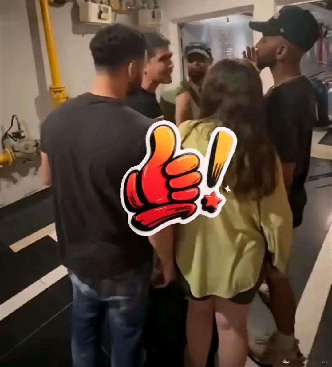 小利说事三个外国男子和一个中国女孩聊天,不知怎的,其中一个男子突然飙出“Fuc