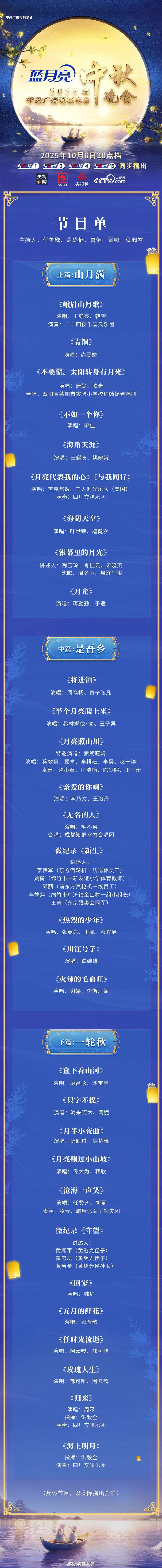 央视、湖南卫视、东方卫视中秋晚会节目单🈶