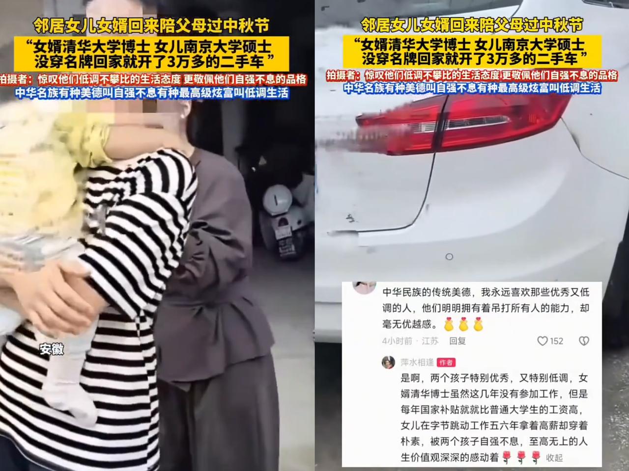不是人家买不起, 而是压根看不上。 邻居家女婿清华博士,女儿是 南大硕士,回农村过中秋开辆3万多二手车,直接让大伙惊掉下巴。有人冷嘲热讽,说博士也不一定有钱;有人质疑硕士身份,还拿送外卖举例 甚至觉得开二手车就是买不起。可实际上呢,评论区“往事随风”就说自家孩子年入7位数,还买2万二手车送娃,觉得能开就行。 “一心二用”也讲姐夫姐姐在西飞上班,985本硕连读,一年攒50万,开8年别克还全款买两套房咱就说,农村里这攀比风真是重。 但日子是自己过,名声好坏别人说,自己舒坦才最重要。你们身边有没有这种因为看似“低调”就被误解的事儿呢?