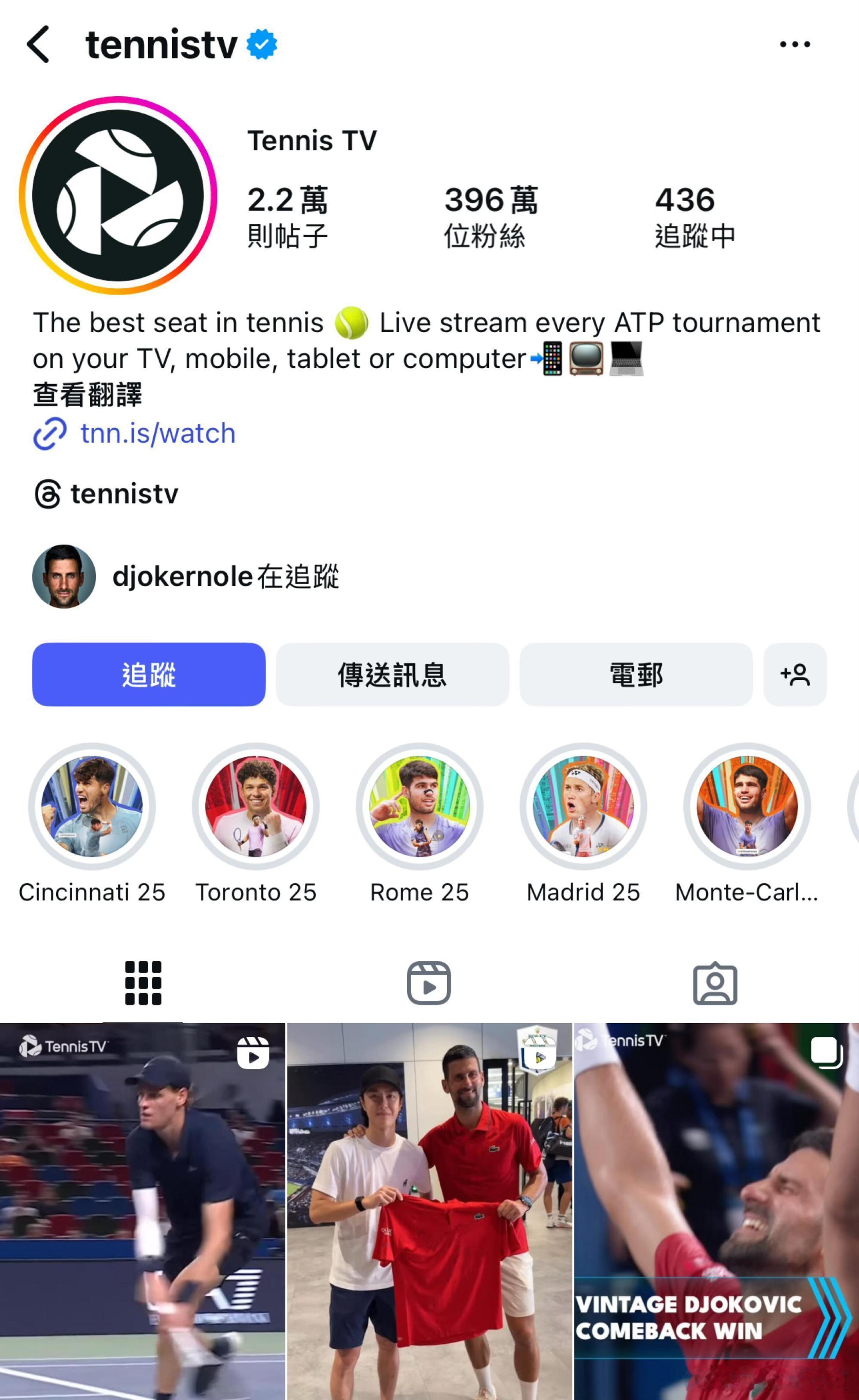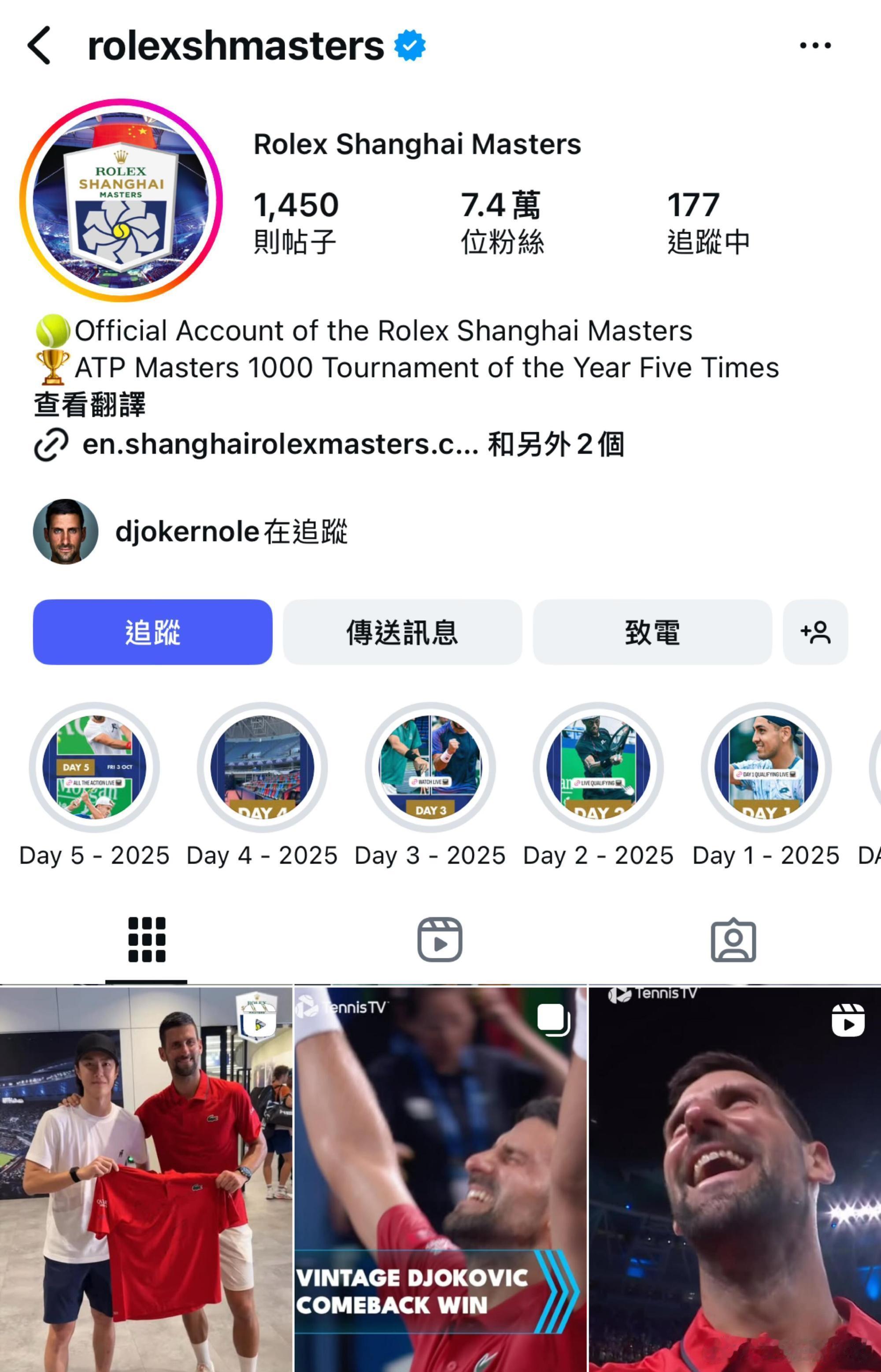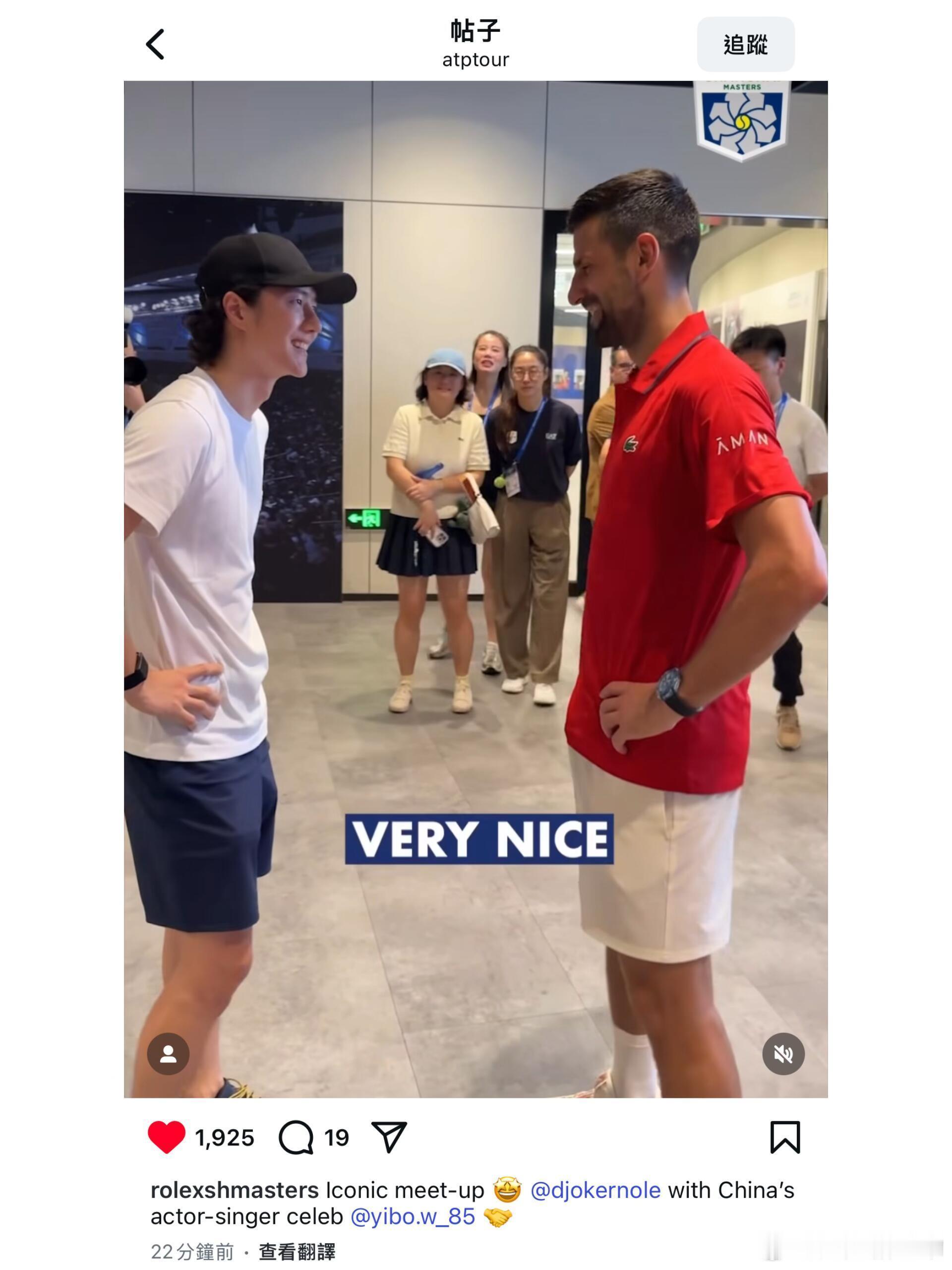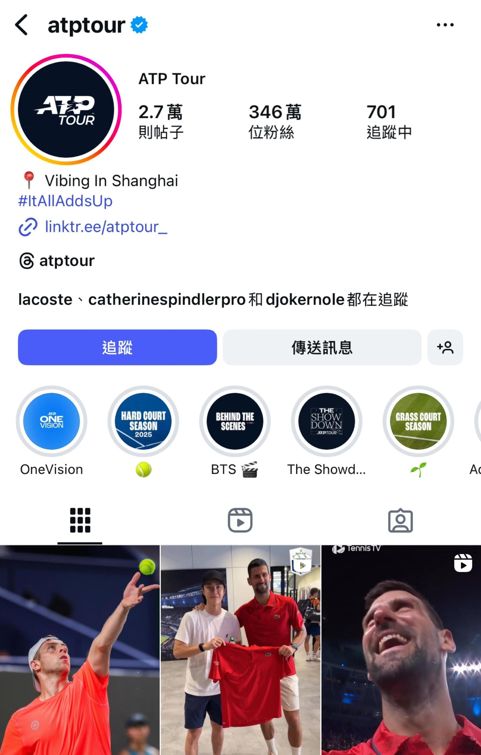 两位主角、ATP、tennisTV、劳力士上海大师赛