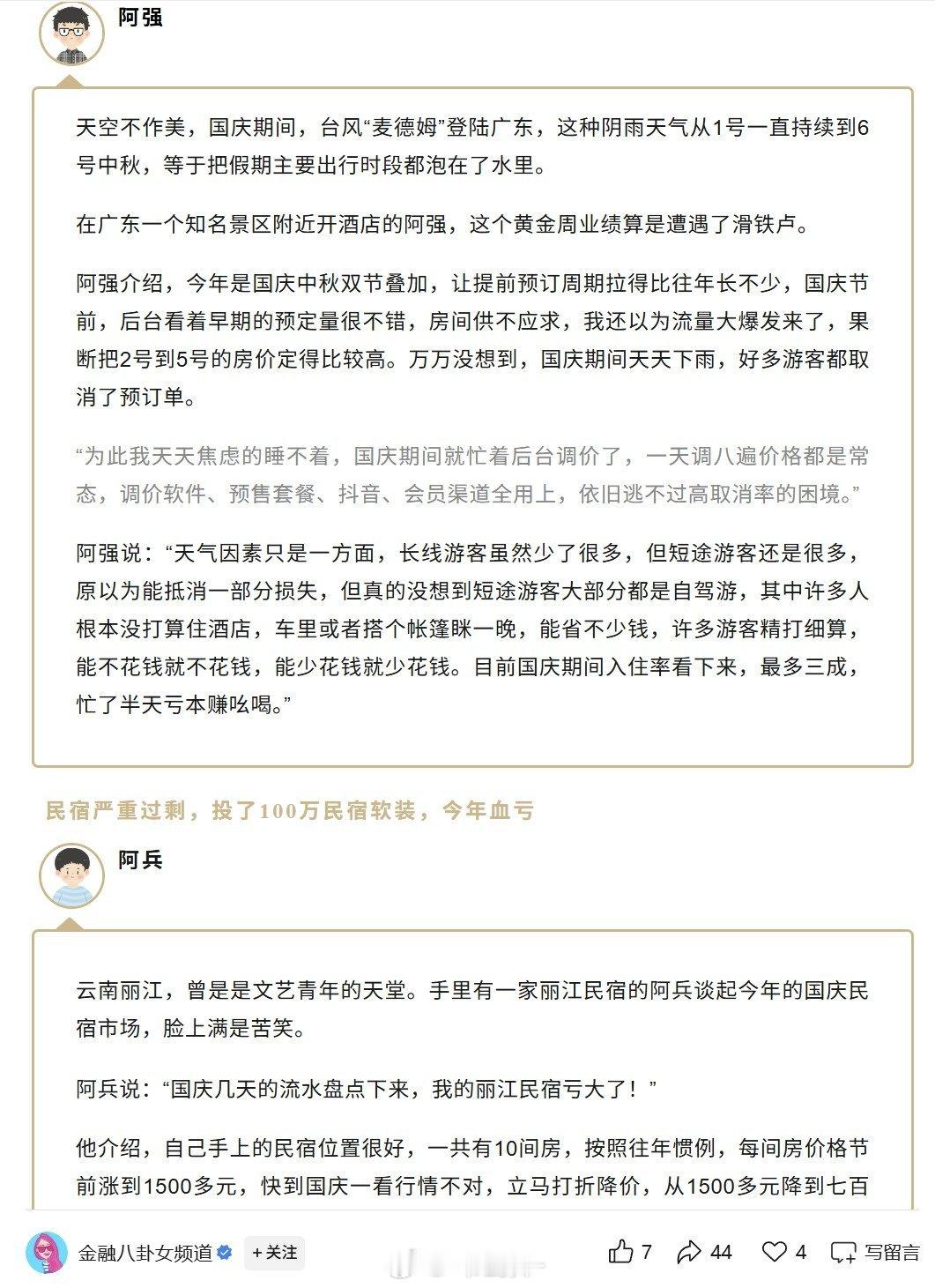十一朋友全家去海边玩,度假酒店价格比平时涨一倍,还满房,都是假的?当然民宿根本不具有代表性,由于民宿没有硬件和服务标准,容易踩到坑。