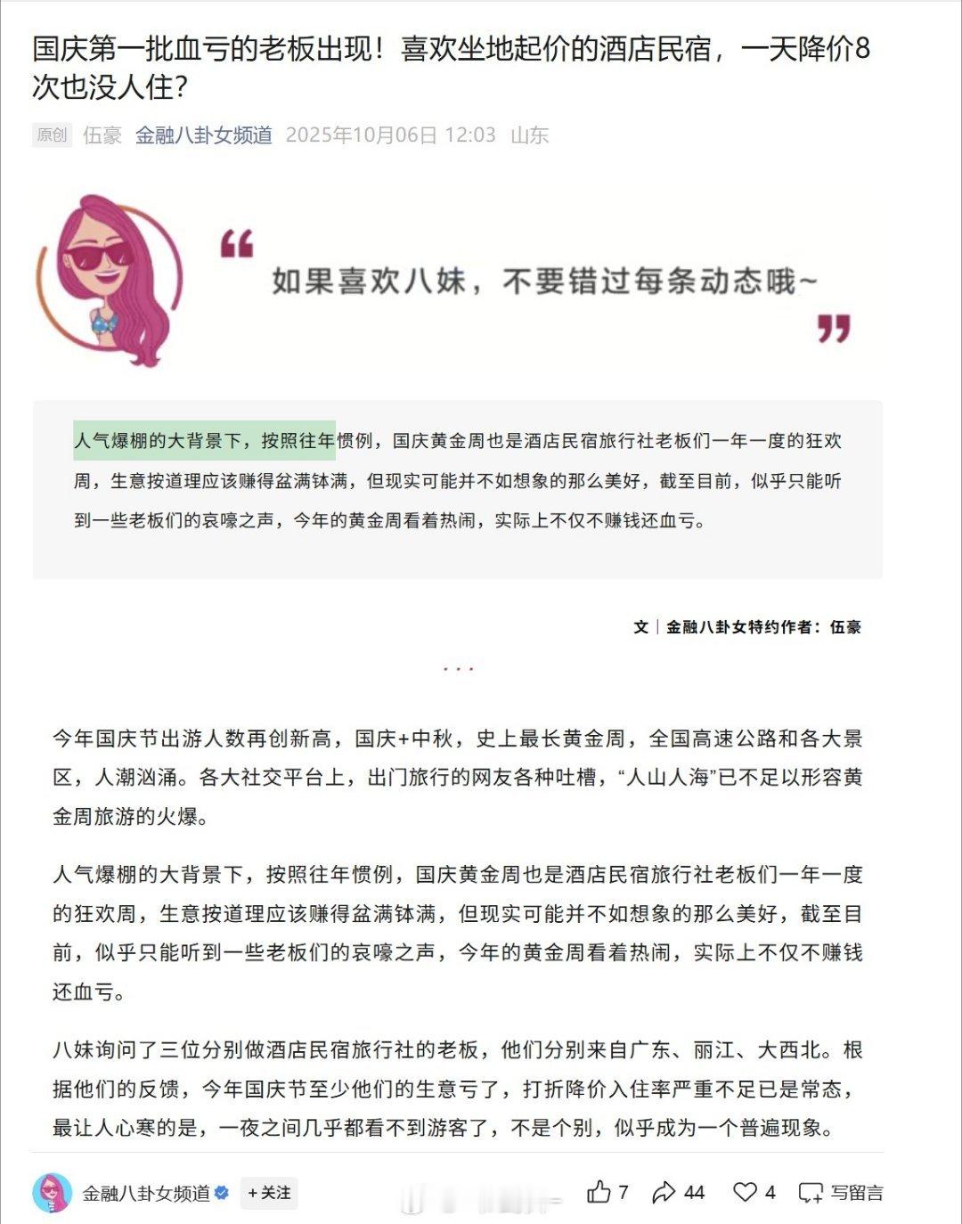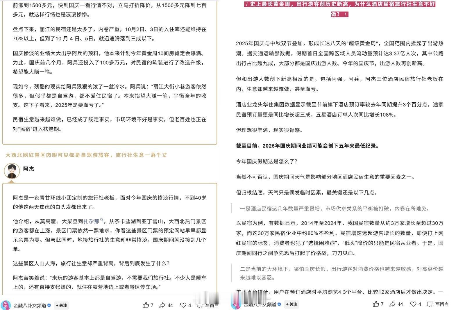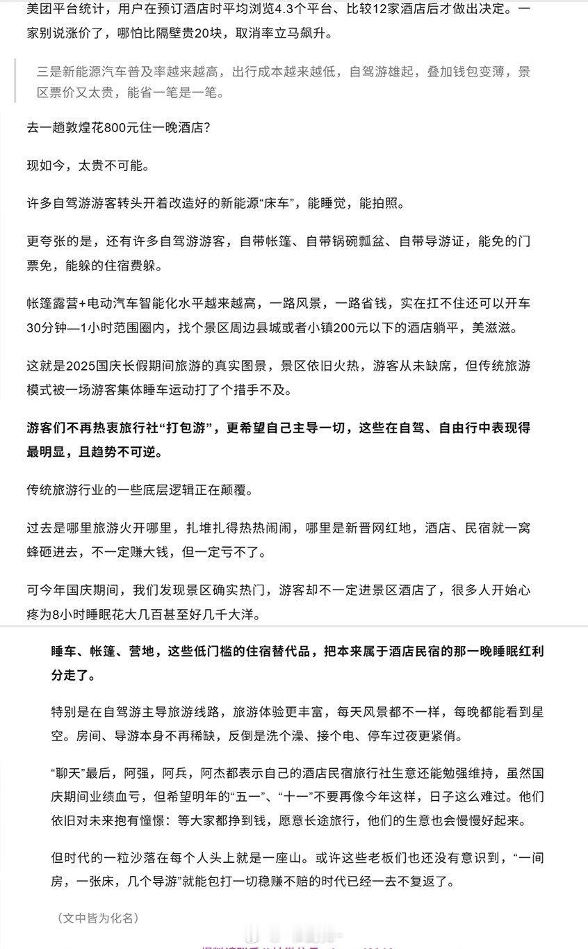 其实都不用看这种文章,你就看携程等一些酒店订购网站。如果十一前还能有优惠价格订购,就说明旅游的人并不多。反之亦然!
