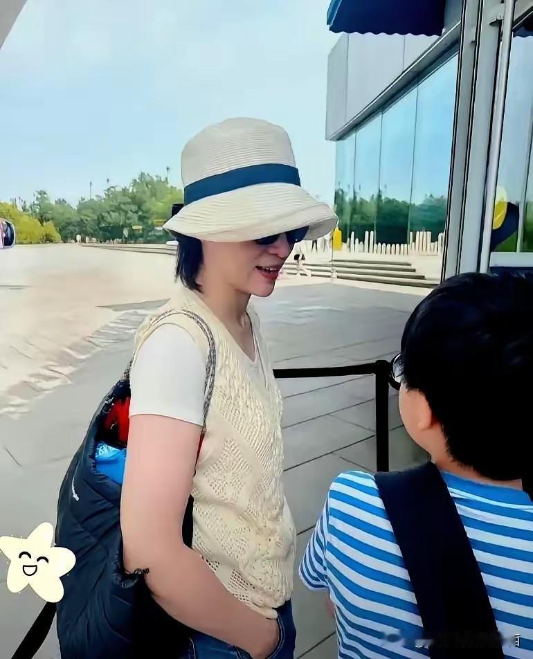 路人镜头下的董卿,一身休闲装打扮,一身的轻松自在,许久没有露面的她看起来更加有气
