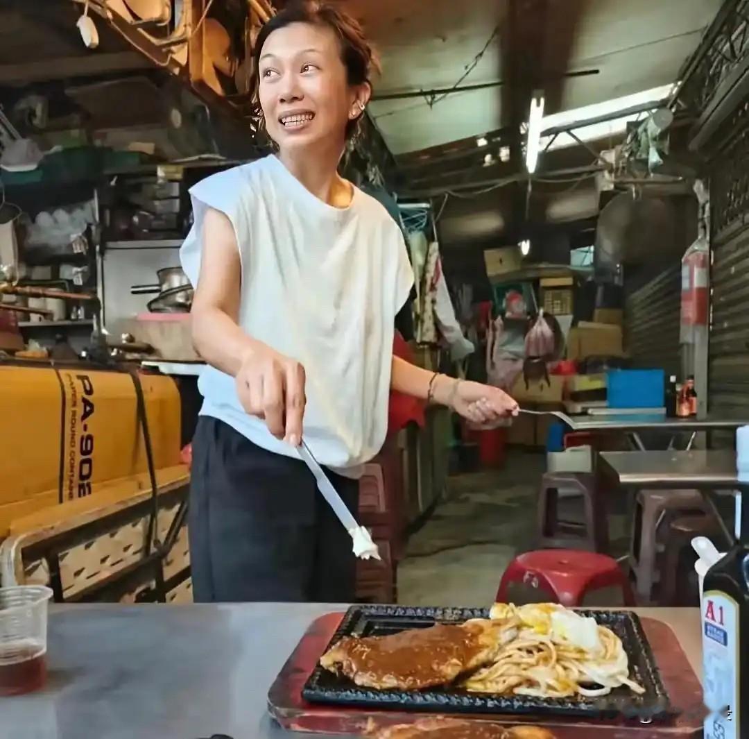 萧敬腾携夫人街边用餐,公开夸赞可爱,52岁林有慧近照显老态。他们坐在塑料椅子上,面前放着一块煎得正好的铁板牛排,油花四溅,香气扑鼻。萧敬腾拿起手机,先拍了老婆,不是拍食物。林有慧在镜头前笑着躲闪,嘴里说“别拍了”,但眼角还是露出了笑意![呲牙][呲牙]